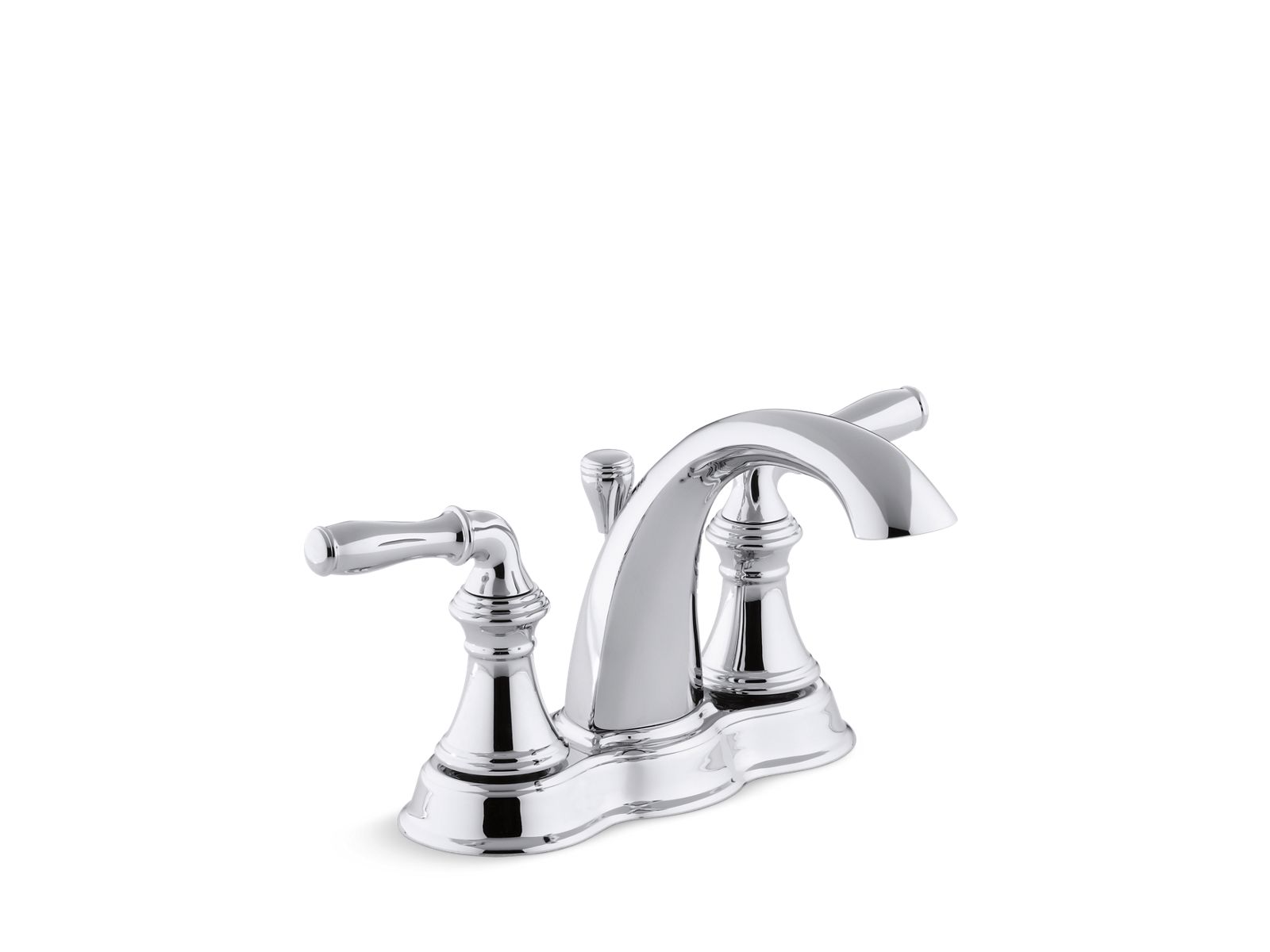 Featuring a classic silhouette, this Devonshire sink faucet complements a variety of bathroom decors. The faucet features ergonomic sculpted lever handles for easy control. A spout and matching pop-up drain with a tailpiece completes the set.