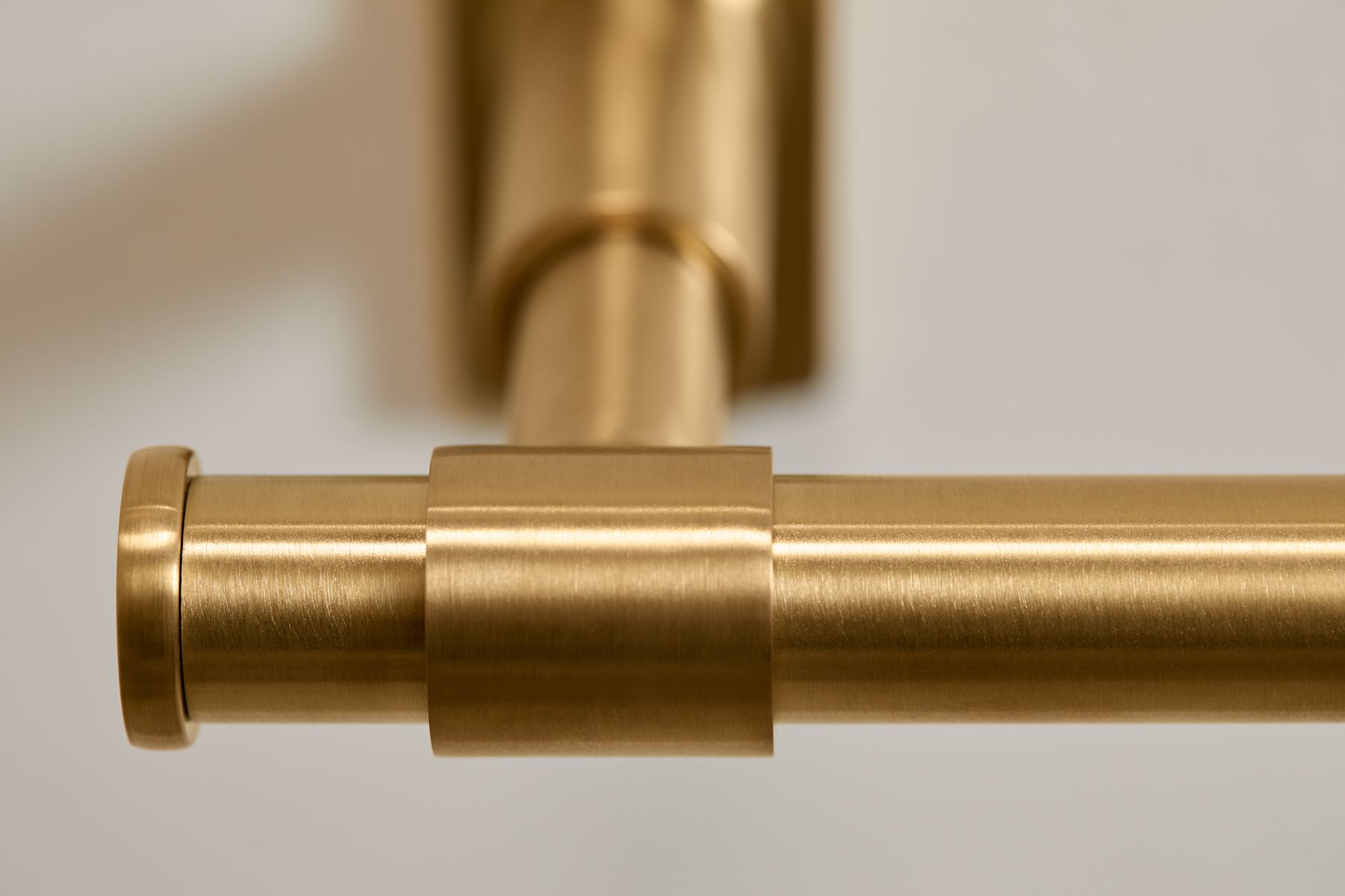 Drawing inspiration from the archives, the Castia bathroom faucet and accessory collection from Kohler x Studio McGee combines classic and modern influences in a timeless expression for the home. Crafted with meticulous attention to detail, the bathroom accessories showcase stacked connection points in a subtle homage to the raw beauty of pipe fittings. Ever versatile, the Castia collection effortlessly harmonizes with a variety of environments.