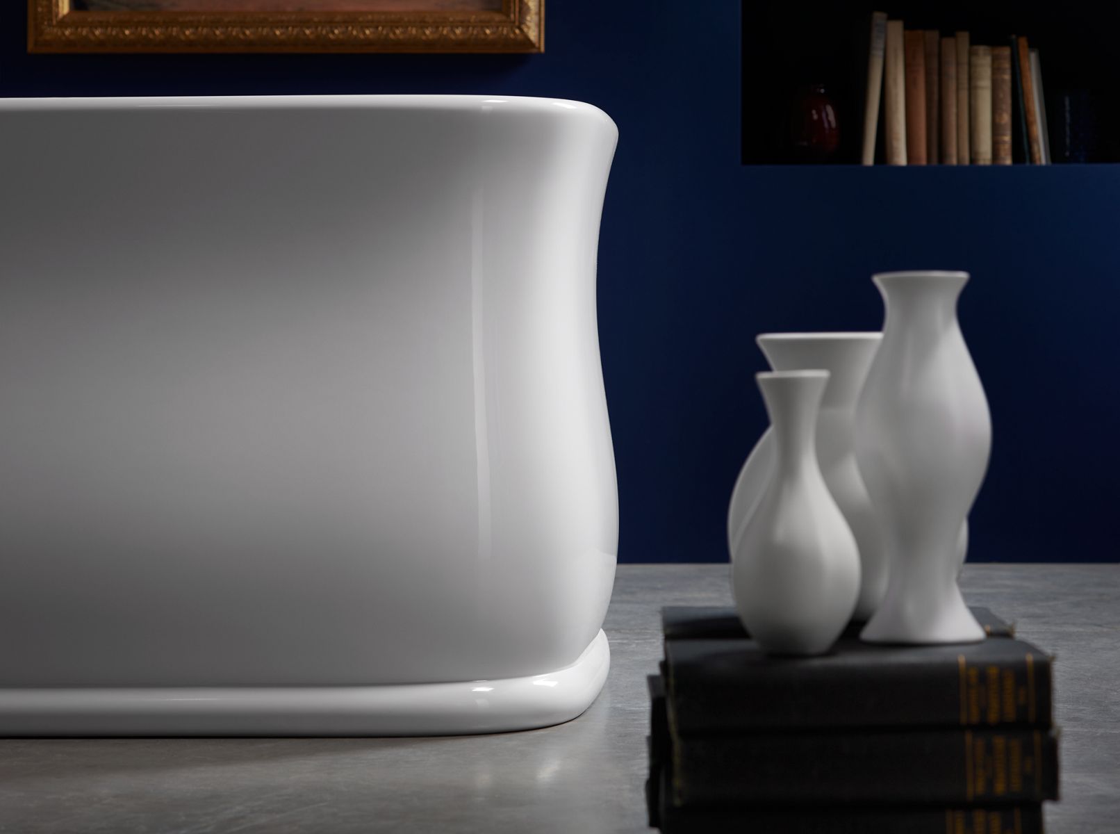 Inspired by an original design from 1928, the Imperator features refined proportions with a nod toward classic Roman architectural styles. This Imperator freestanding bath offers gracefully sculpted curves that cradle your body as you settle in for a deep, restorative soak. KOHLER Lithocast® cast resin material allows for geometries with dynamic style and crisp, hand-finished detail rich with character. KOHLER Lithocast® Gloss cast resin is lightweight and easy to clean, with a high-gloss finish.