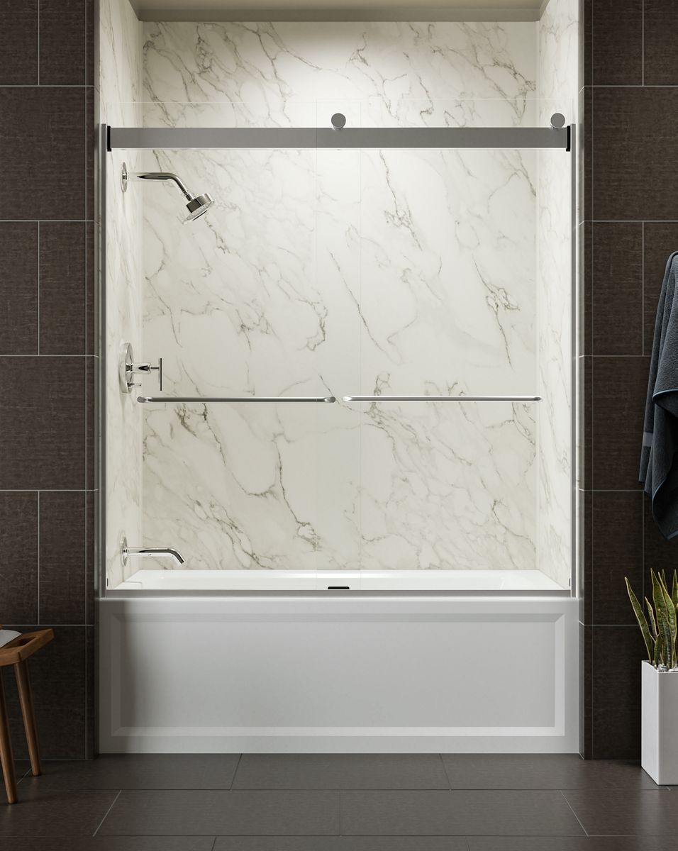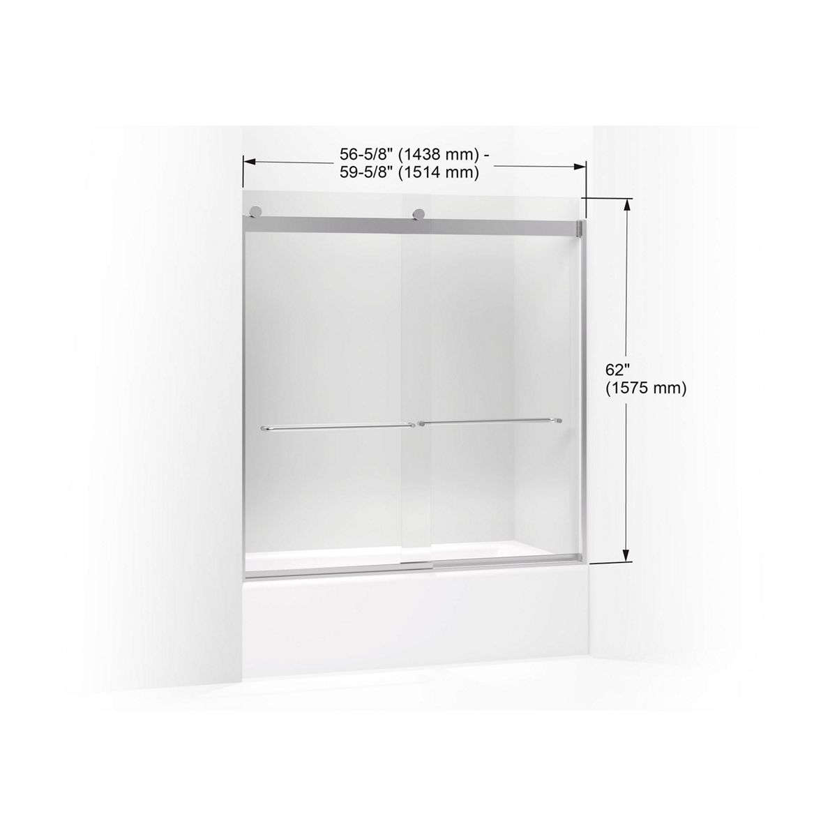 Levity® Sliding Bath Door, 62" H X 56-5/8 - 59-5/8" W, With 1/4" Thick Crystal Clear Glass Anodized Brushed Bronze