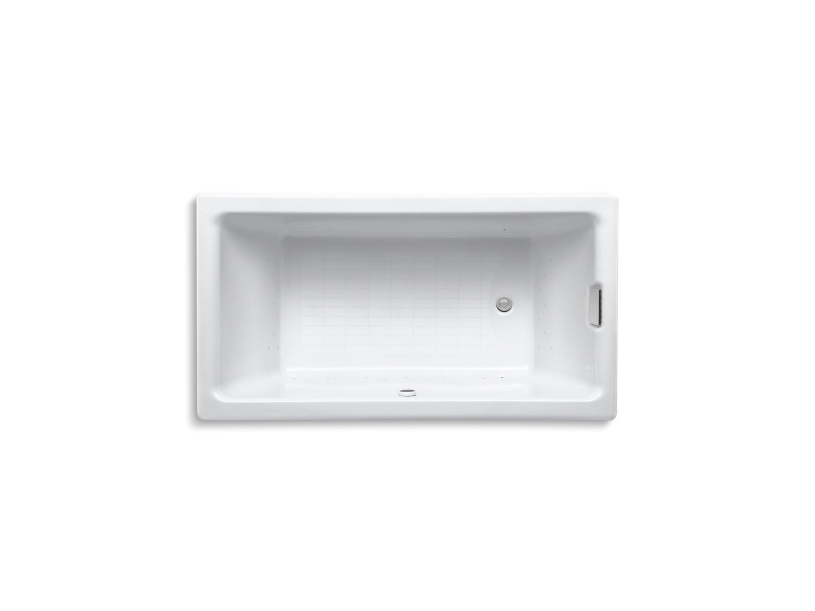This two-person bath lets you experience the bliss of BubbleMassage™ together. Combining distinctive KOHLER styling with versatile installation options, the Tea-for-Two® heated BubbleMassage™ air bath is an ideal choice for any bathroom. With Heated BubbleMassage™ hydrotherapy, airjets release thousands of heated bubbles that deliver a blissfully warm, invigorating full-body massage experience, helping to center your mind and release tension in your muscles. Constructed of durable KOHLER® cast iron, this model features a contoured drain overflow that allows comfortable bathing at either end. Safeguard® slip-resistant surface enhances safety.