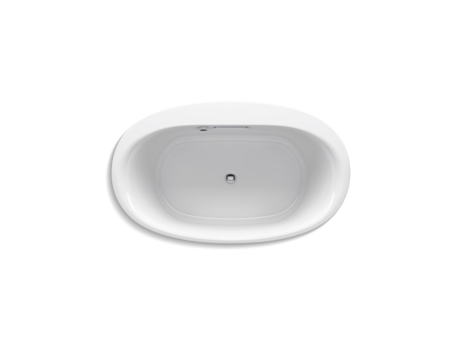 Streamlined for simplicity, the Underscore oval bath exudes refined style with contemporary flair. The Bask heated surface warms your back, shoulders, and neck with adjustable temperature settings to create a soothing, spa-like environment. A slotted overflow drain allows for a luxuriously deep bath as you relax against the comfortable sloped backrest.