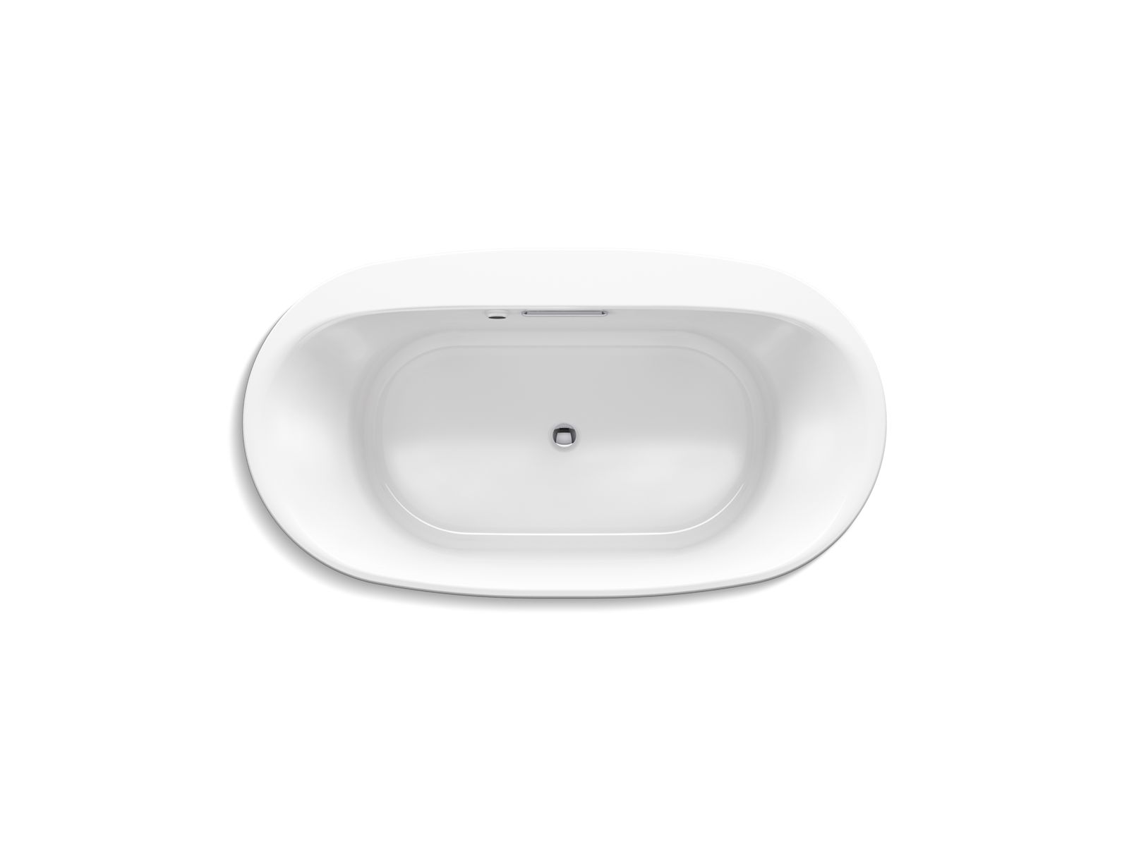 Streamlined for simplicity, the Underscore oval bath exudes refined style with contemporary flair. The Bask heated surface warms your back, shoulders, and neck with adjustable temperature settings to create a soothing, spa-like environment. A slotted overflow drain allows for a luxuriously deep bath as you relax against the comfortable sloped backrest.