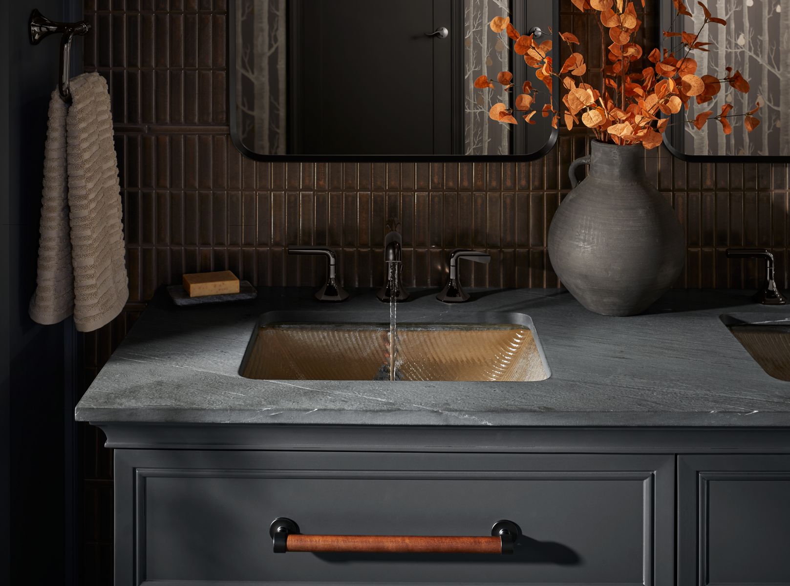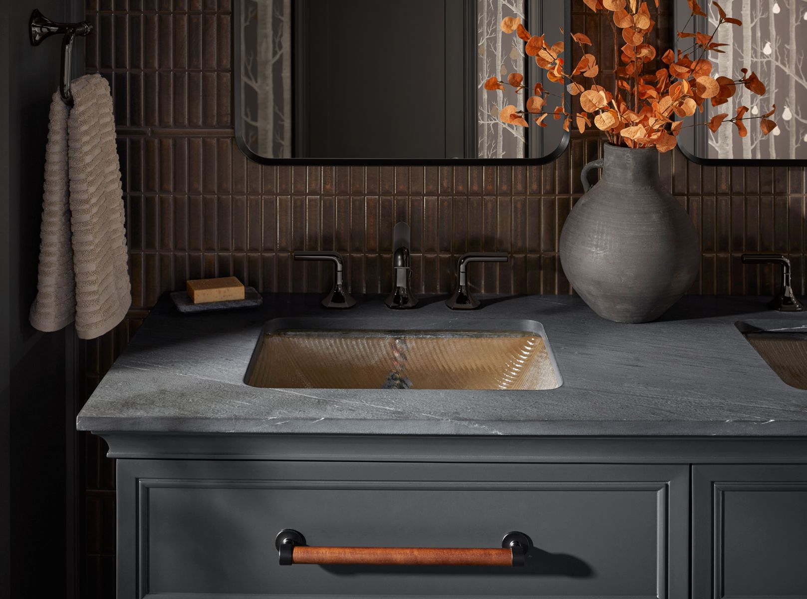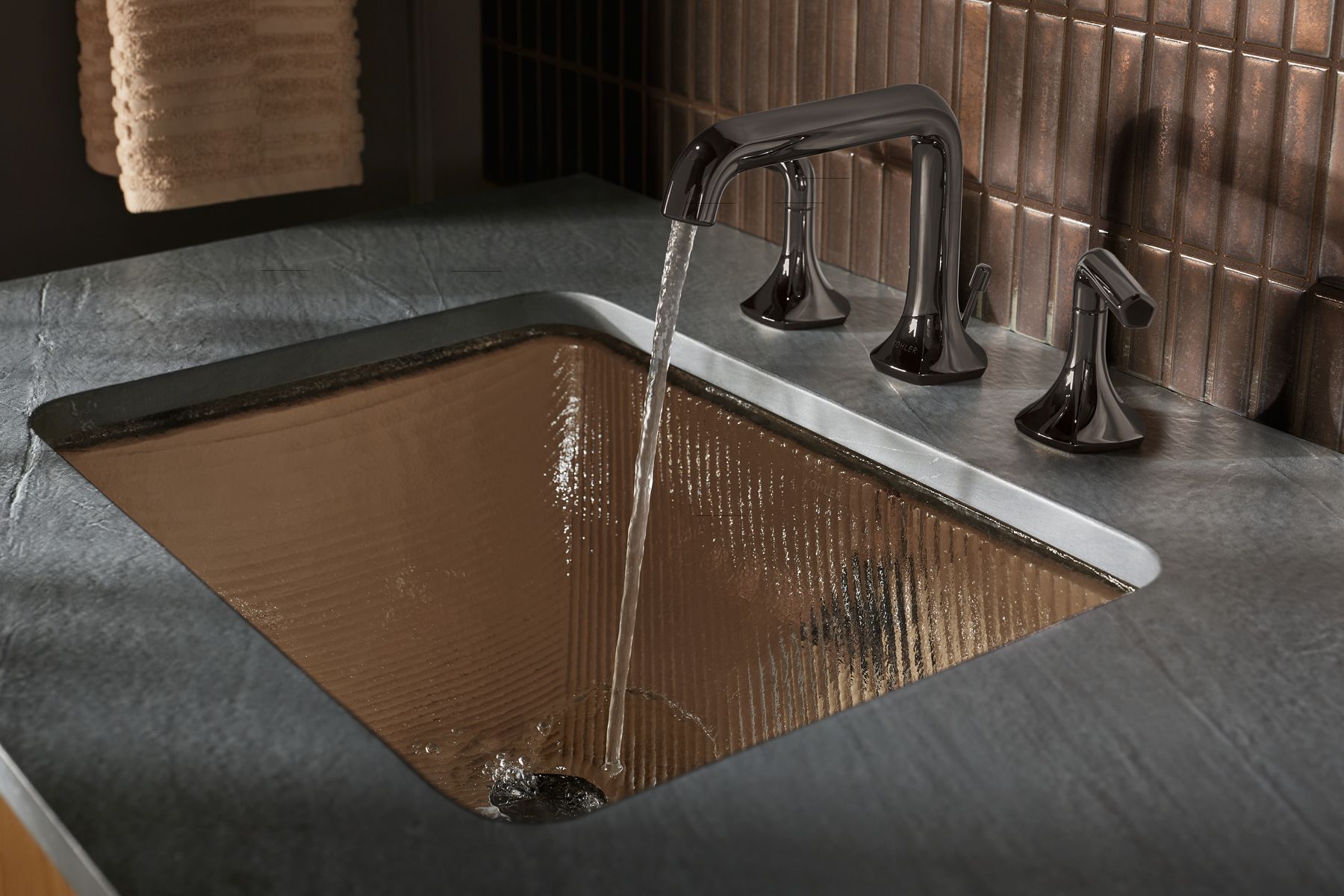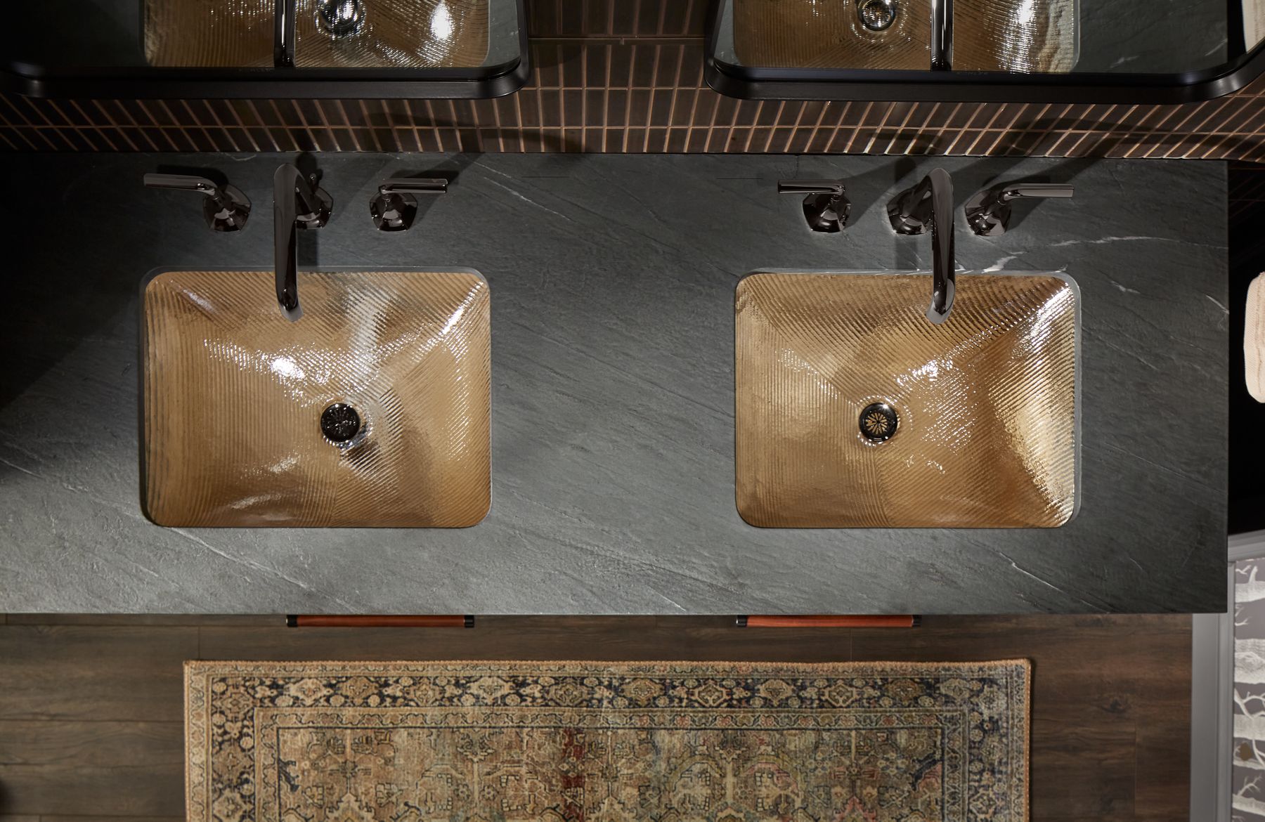 The Yepsen glass undermount bathroom sink combines a linear pattern with angled seams, creating a Y design across the exterior wall of this rounded-rectangular basin. Like ripples in a pool, the sink’s distinctive ridges draw the eye to the core of this artisan-crafted centerpiece, while also concealing items stored beneath it. Artistically intriguing and functionally fulfilling, this elegant undermount sink was designed for the bathroom spotlight.