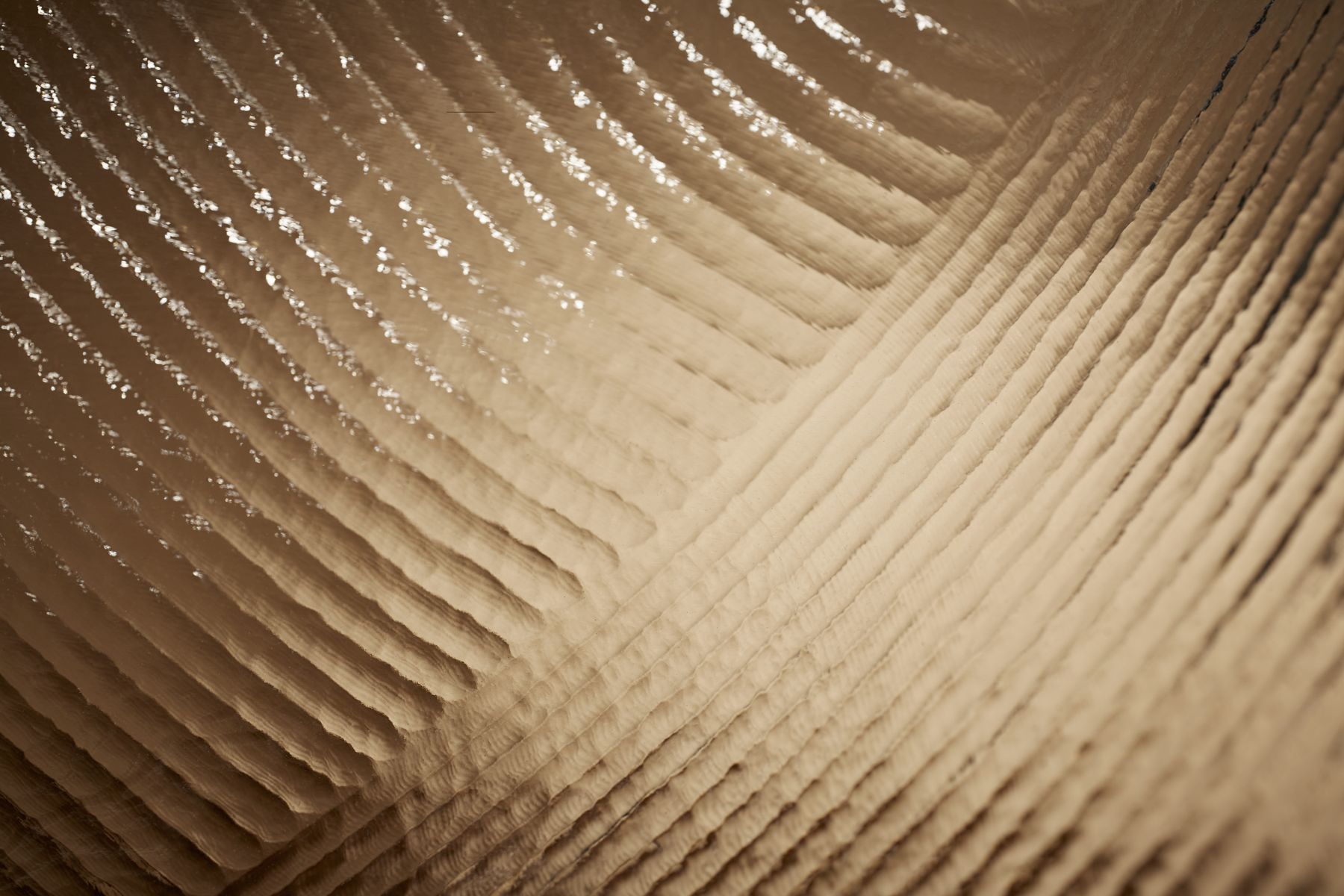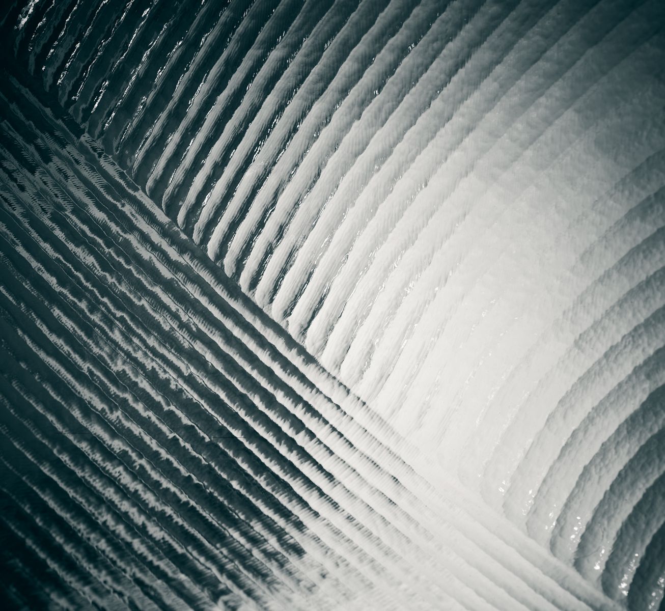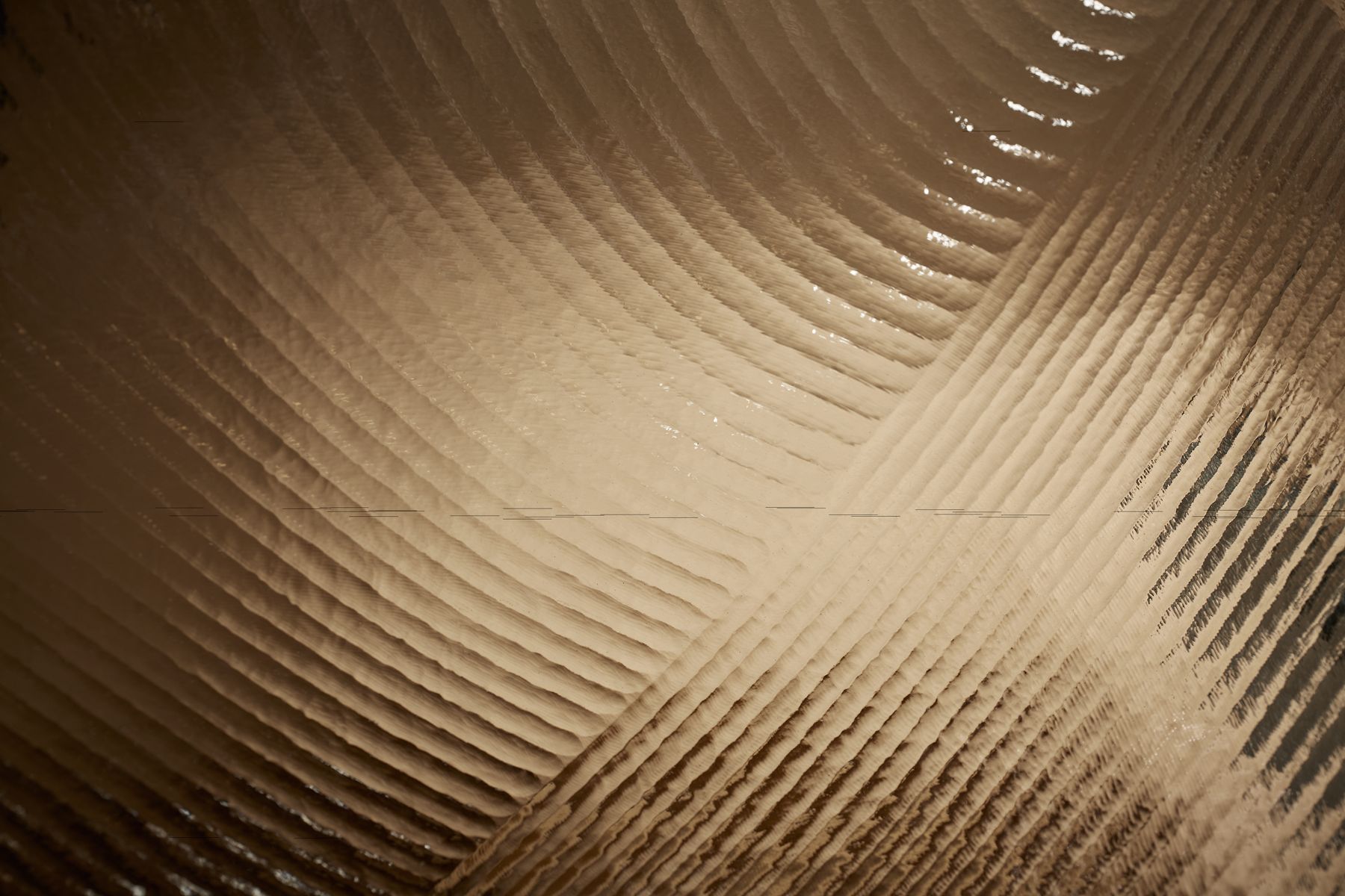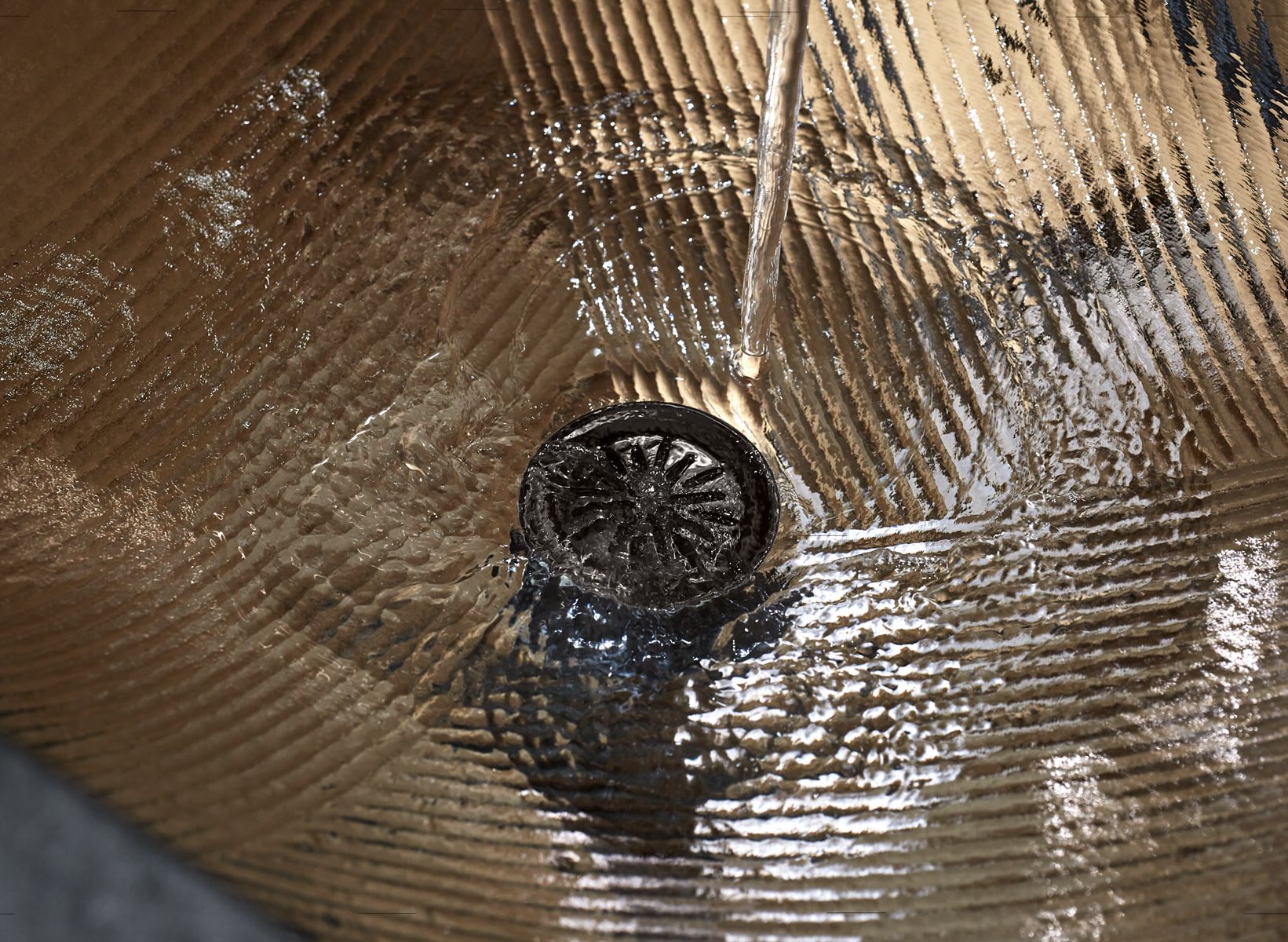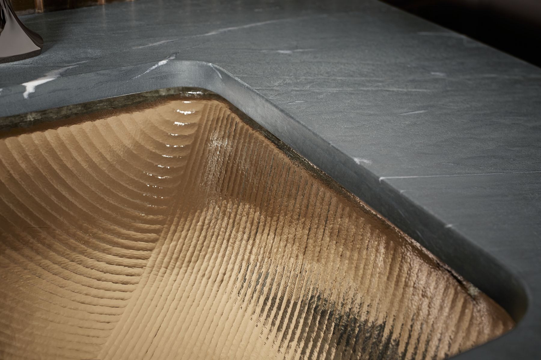 - Deep rectangular basin in translucent glass with concealing linear texture