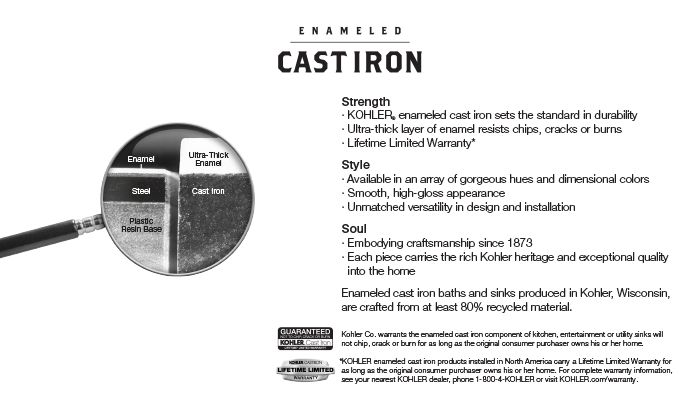 Bring a classic into your bathroom. The elegance of this freestanding clawfoot bath commemorates a century of KOHLER plumbing fixtures. The Birthday Bath makes a unique style statement, while strong cast iron construction ensures beauty and performance for years to come. The 6-foot length offers extra room to bathe in comfort. The exterior ground coat surface is minimally enhanced and painted to capture as much of the raw elements of the cast iron material. Safeguard® slip-resistant surface enhances safety.