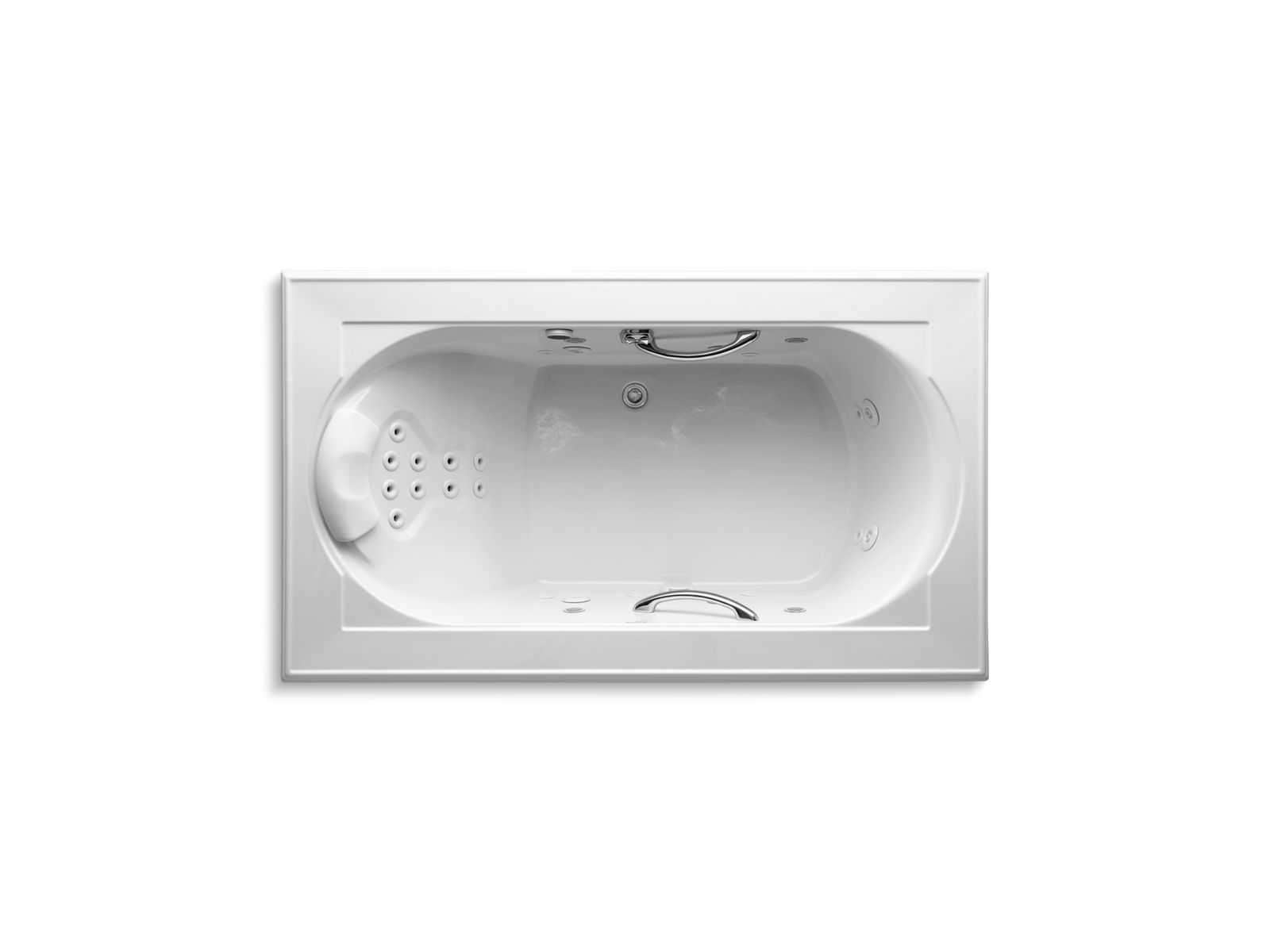 With rich detailing reminiscent of crown molding, Memoirs brings classic architectural style to your bathroom. This Spa/Massage Package bath offers a choice of calming or invigorating water therapy to suit your mood. Its full package of hydromassage options including whirlpool jets, sequencing backjets, and a pillow with pulsating neckjets to envelop your entire body in relaxation. Effervescence ports release thousands of tiny champagne-like bubbles for a unique, revitalizing sensation, while chromatherapy lights bathe you in the soothing glow of colors.