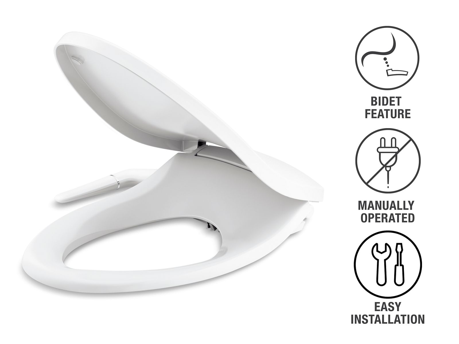 The PureWash M250 bidet toilet seat makes it easy to add the freshness and assurance of personal cleansing to your existing toilet. With a sleek, low-profile seat design, PureWash M250 provides the superior cleansing of a spray wand that's fully adjustable for position and water pressure. This manual bidet toilet seat requires no electricity or batteries and installs in minutes, connecting to the toilet's water supply line.