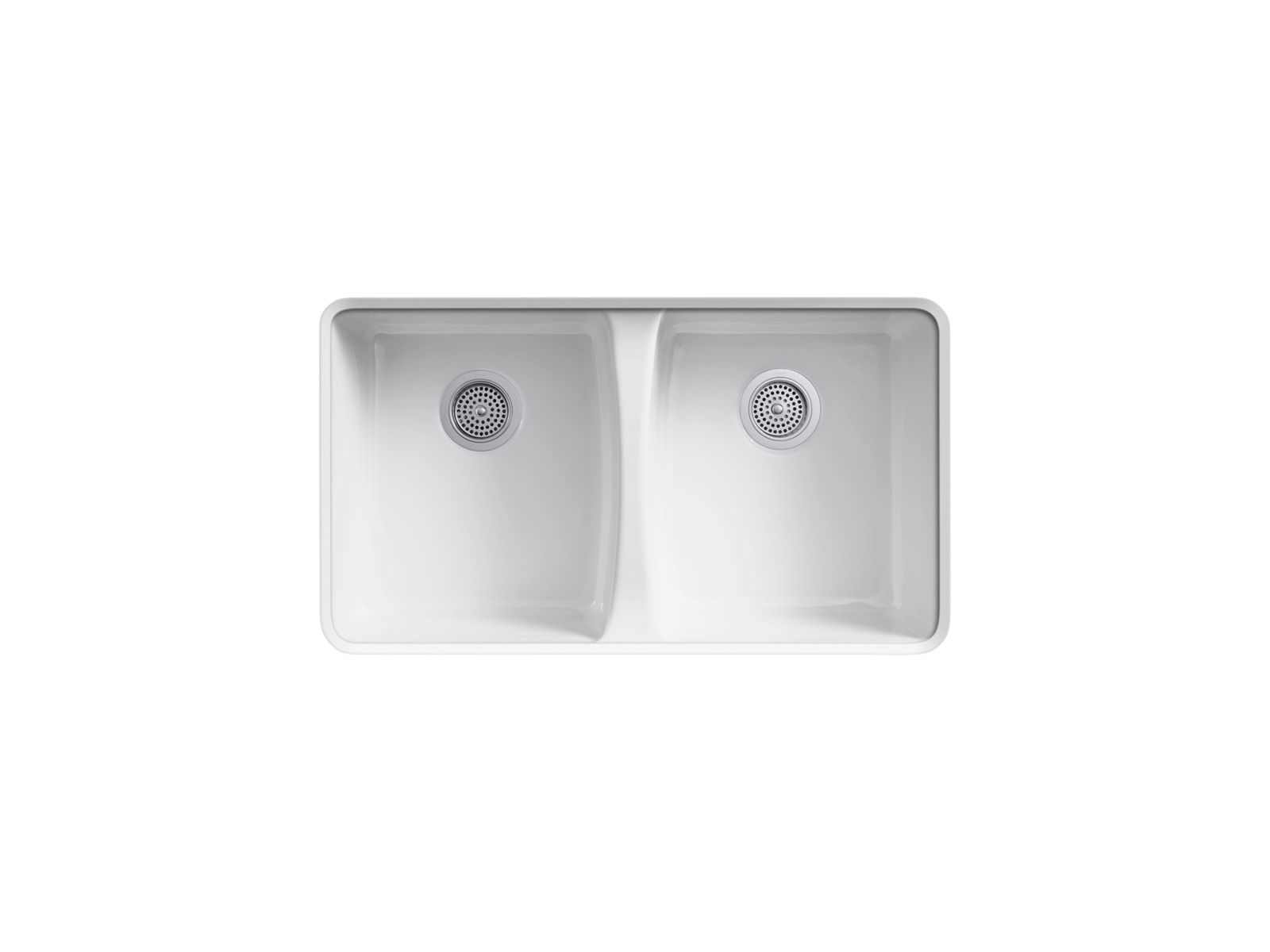 With its classic, versatile style, Deerfield instantly updates any kitchen. Redesigned with deeper bowls and tighter corners, this double-equal sink features approximately 20 percent more basin volume than previous models, giving you plenty of room for cleaning and prep with minimized splashing. A new slimmer saddle and rim offer a crisp, clean look. Crafted from enameled cast iron, this sink resists chipping, cracking, or burning for years of beauty and reliable performance.