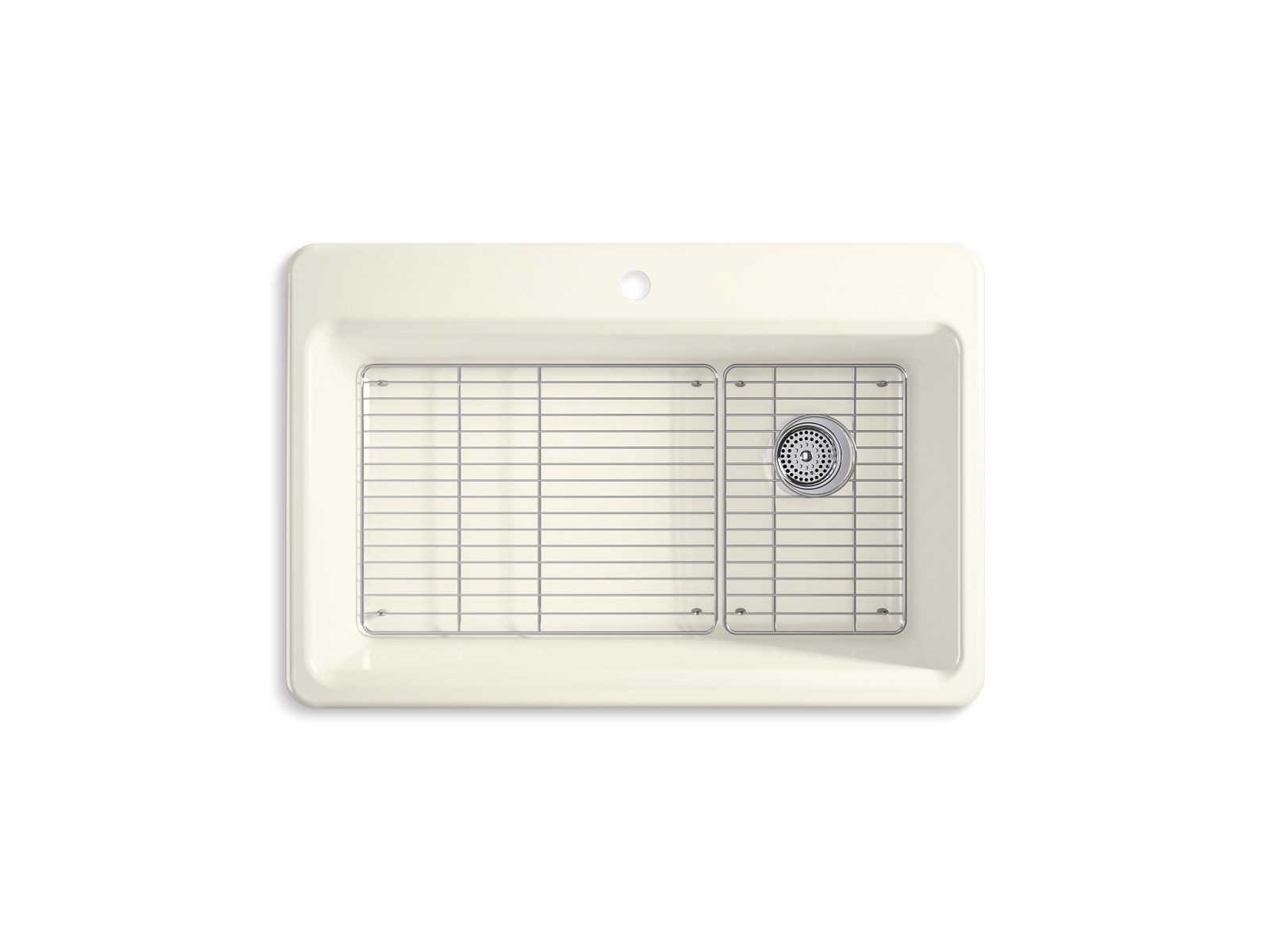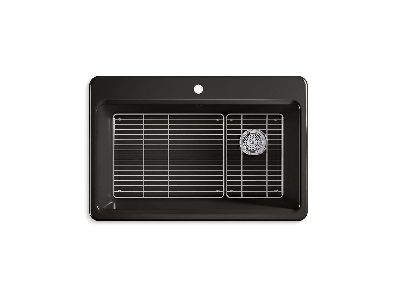 The understated beauty of this Riverby sink makes it an elegant and versatile addition to the kitchen. A single, large bowl provides ample space to soak and wash cookware, while a sloped base to a single offset drain minimizes water pooling. Crafted from enameled cast iron, this sink resists chipping, cracking, or burning for years of beauty and reliable performance. This Riverby sink includes two stainless steel sink racks.