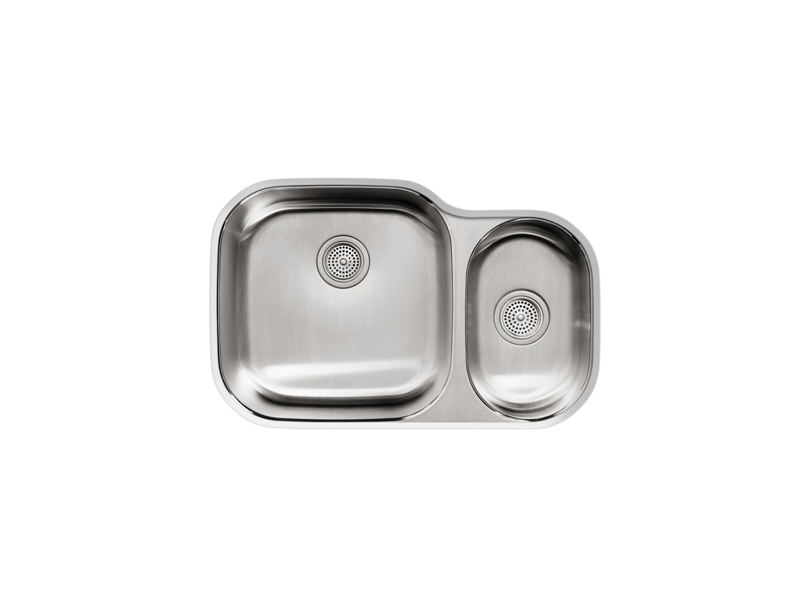 - 9-1/2" depth left bowl and 5-1/2" depth right bowl