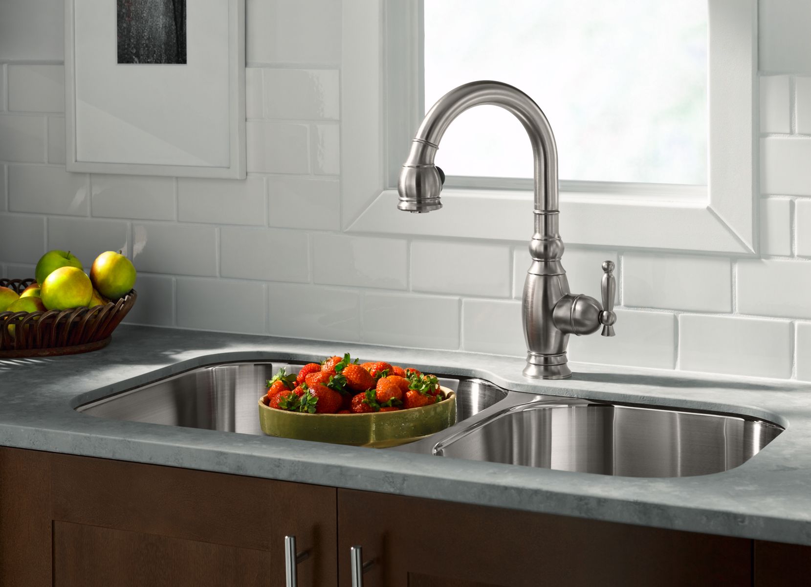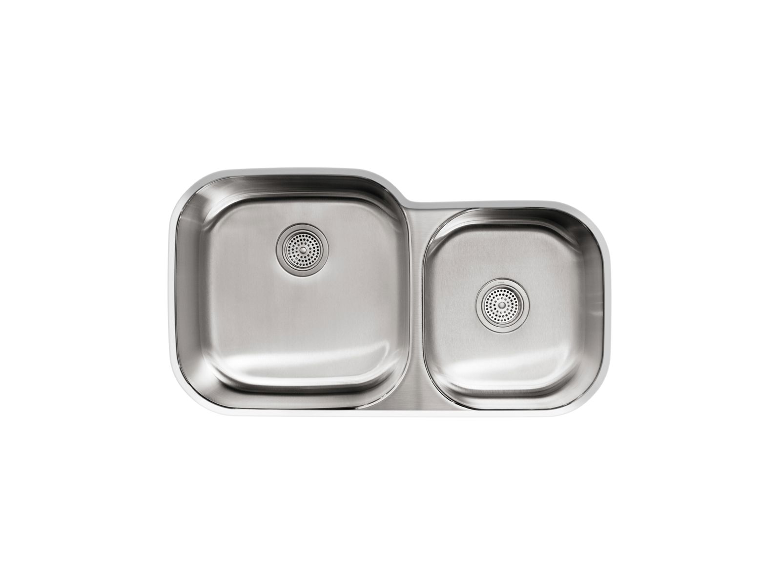 Constructed from premium stainless steel, Undertone brings home the durability, quiet performance, and polished look of professional kitchens. This sink features an engineered sound-absorption system that significantly reduces dishwashing and disposal noise. The extra-large/medium bowls allow you to keep clean and dirty dishes separate while offering plenty of room for oversize pots and pans. A mirror-finish edge adds an elegant accent.