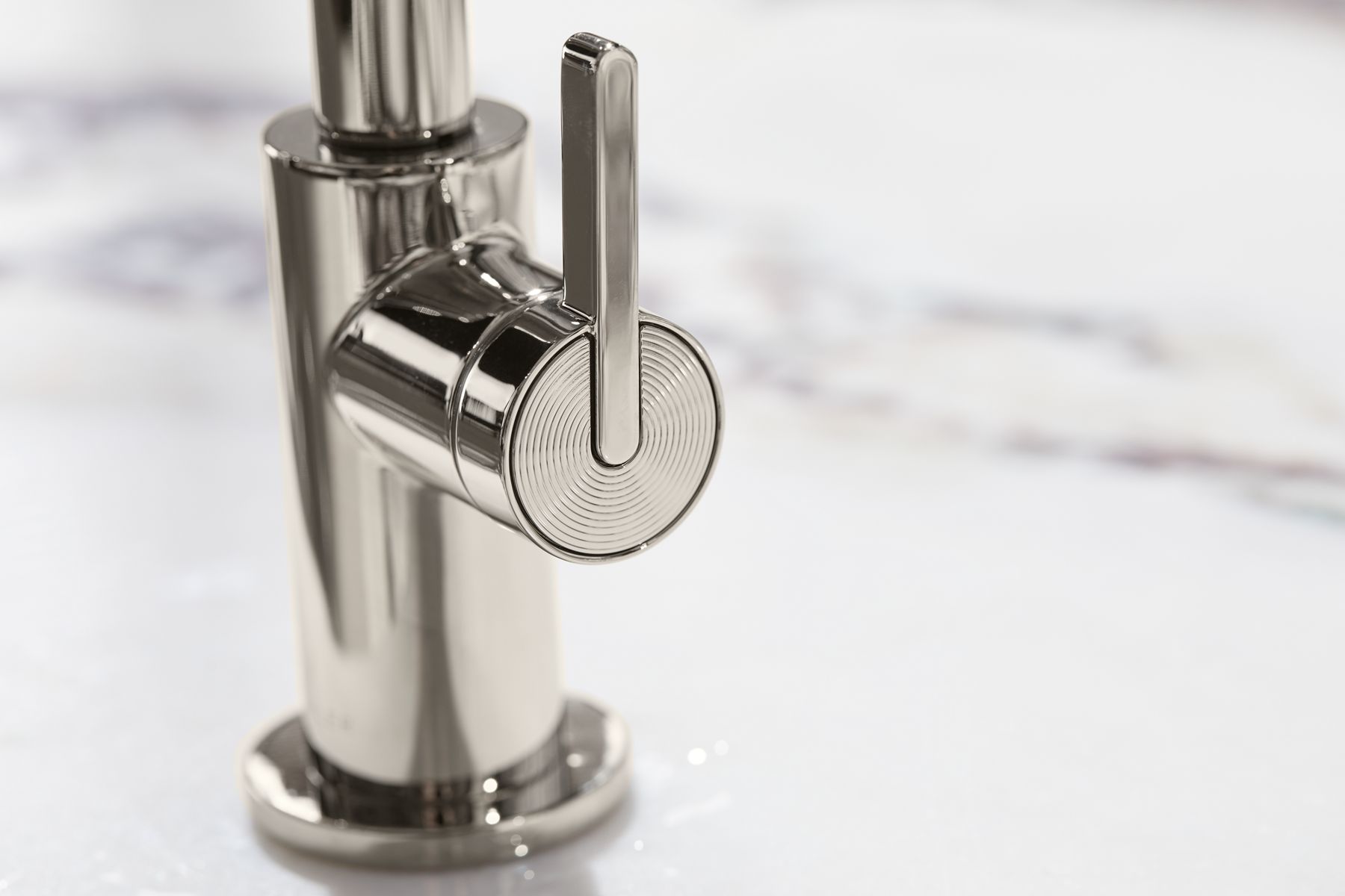 - High-arch spout offers vertical clearance for tall cookware and pitchers