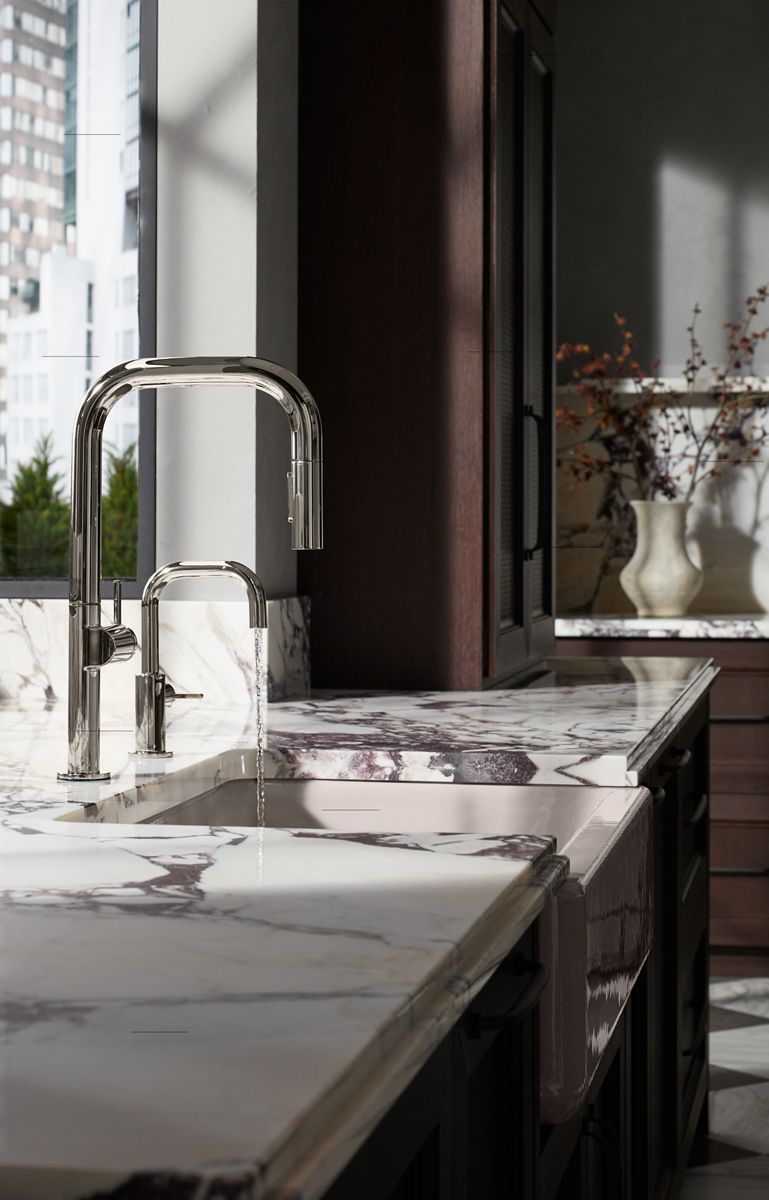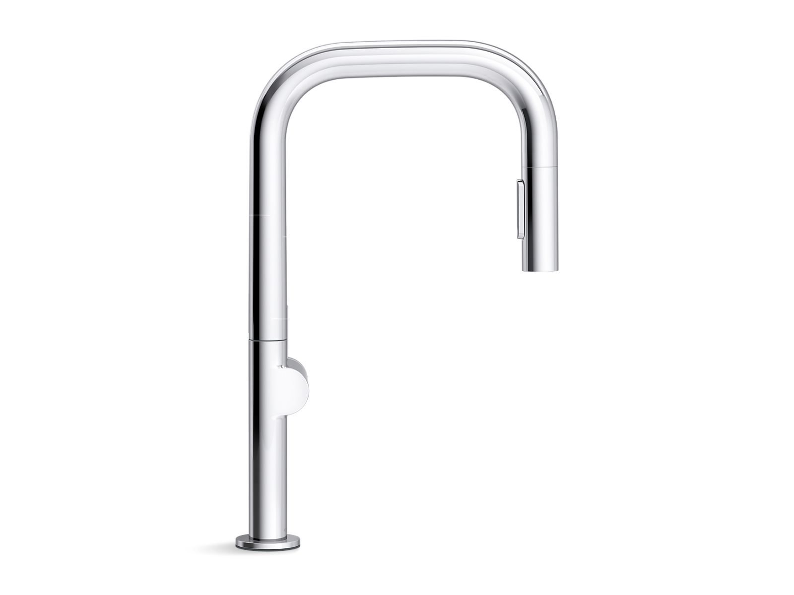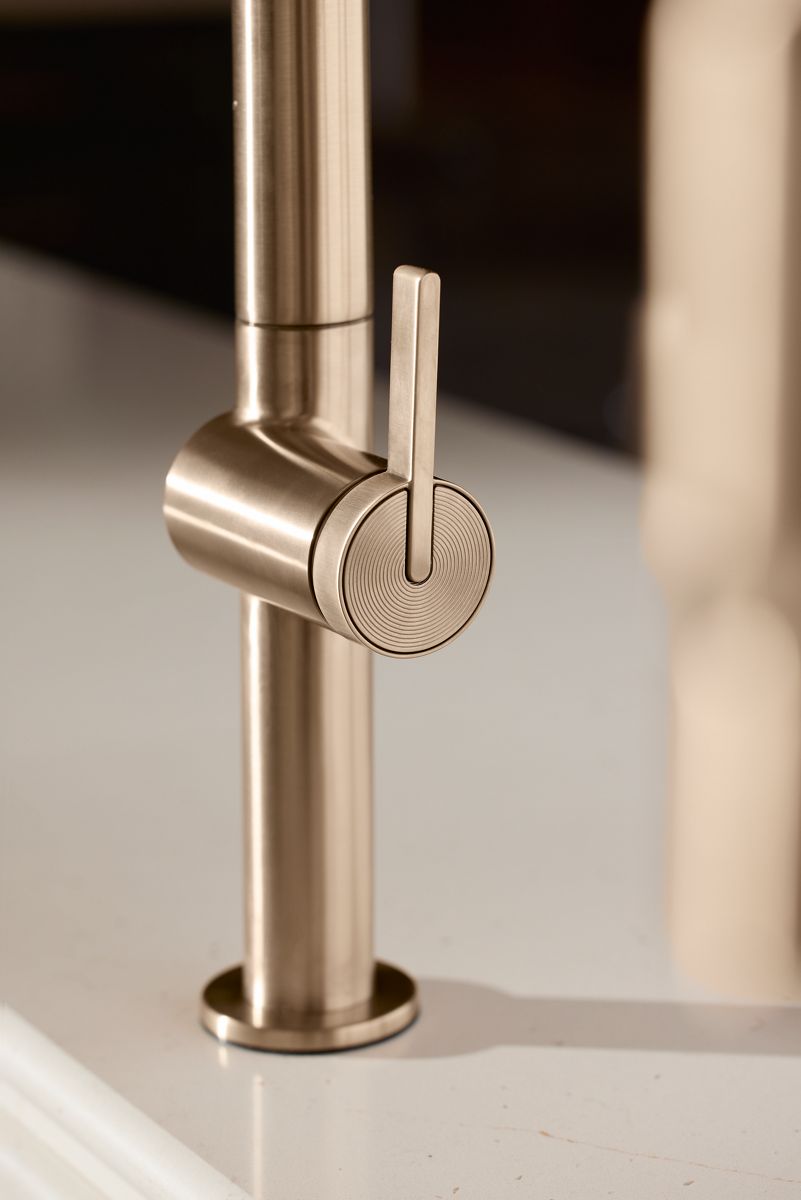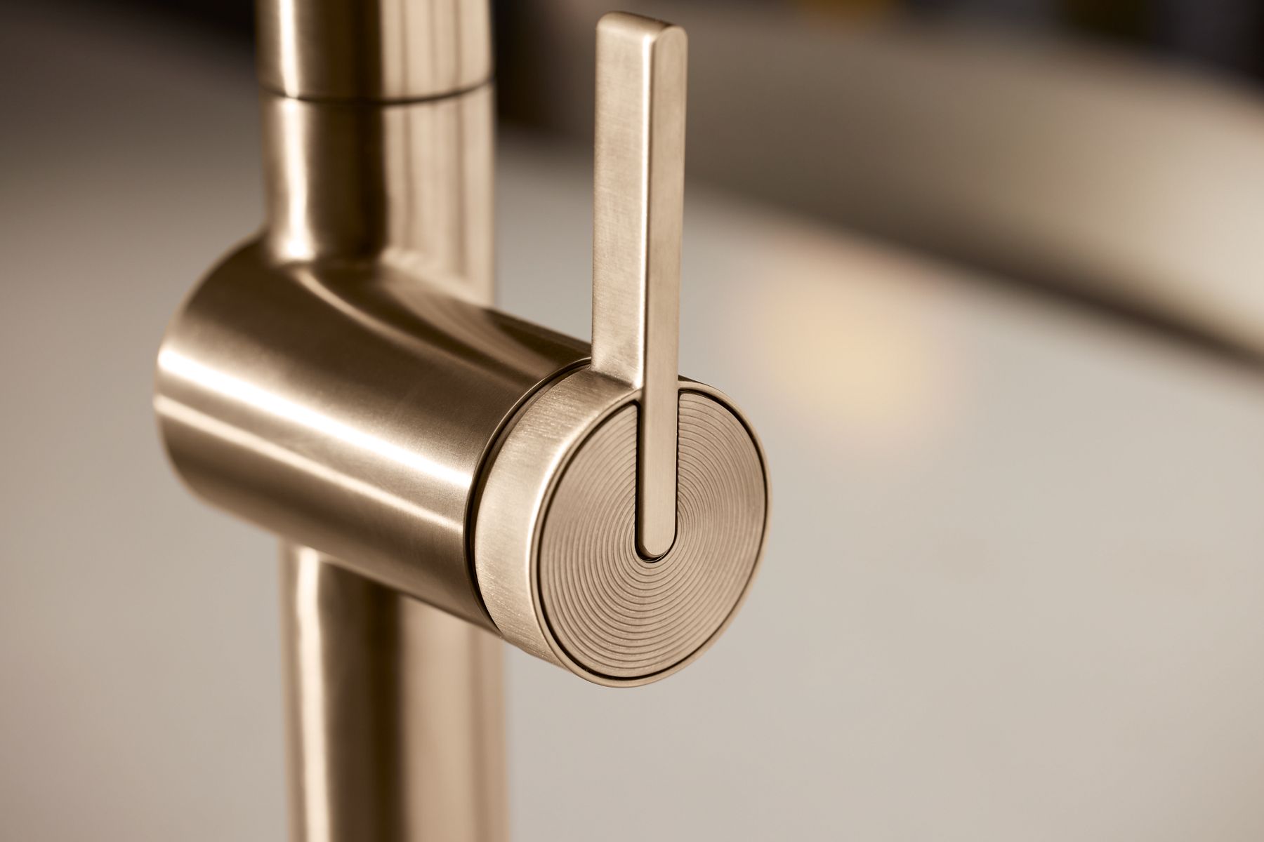 Sleek and minimalist, the Components collection exudes calm sophistication. Strong, confident lines create bold and distinctive silhouettes accentuated by refined design details. The Components pull-down kitchen sink faucet melds this very style with two spray functions, and the DockNetik secure docking system conveniently locks the sprayhead in place with not in use.