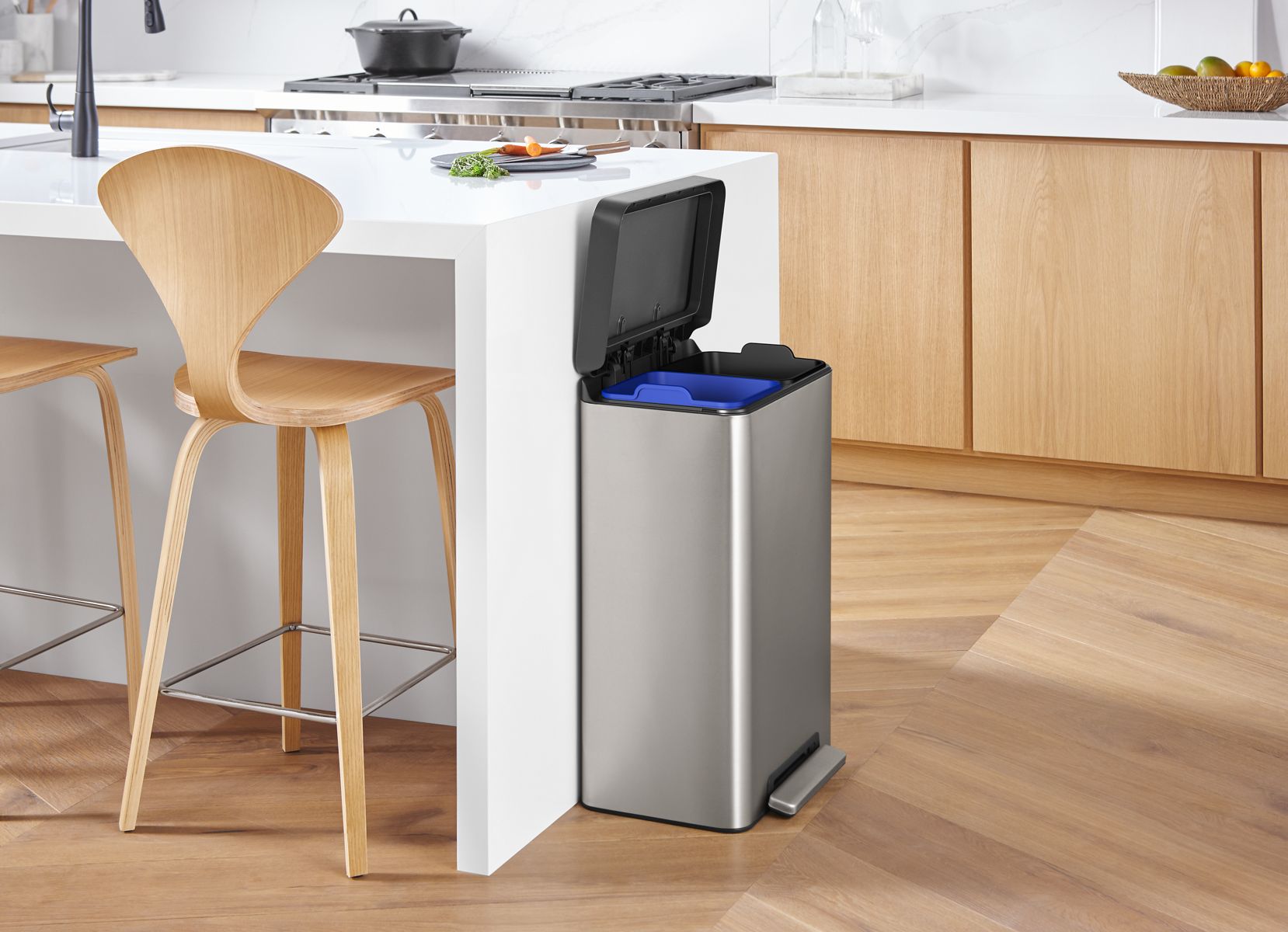- Dual 5.5-gal. compartments for separating trash and recyclables