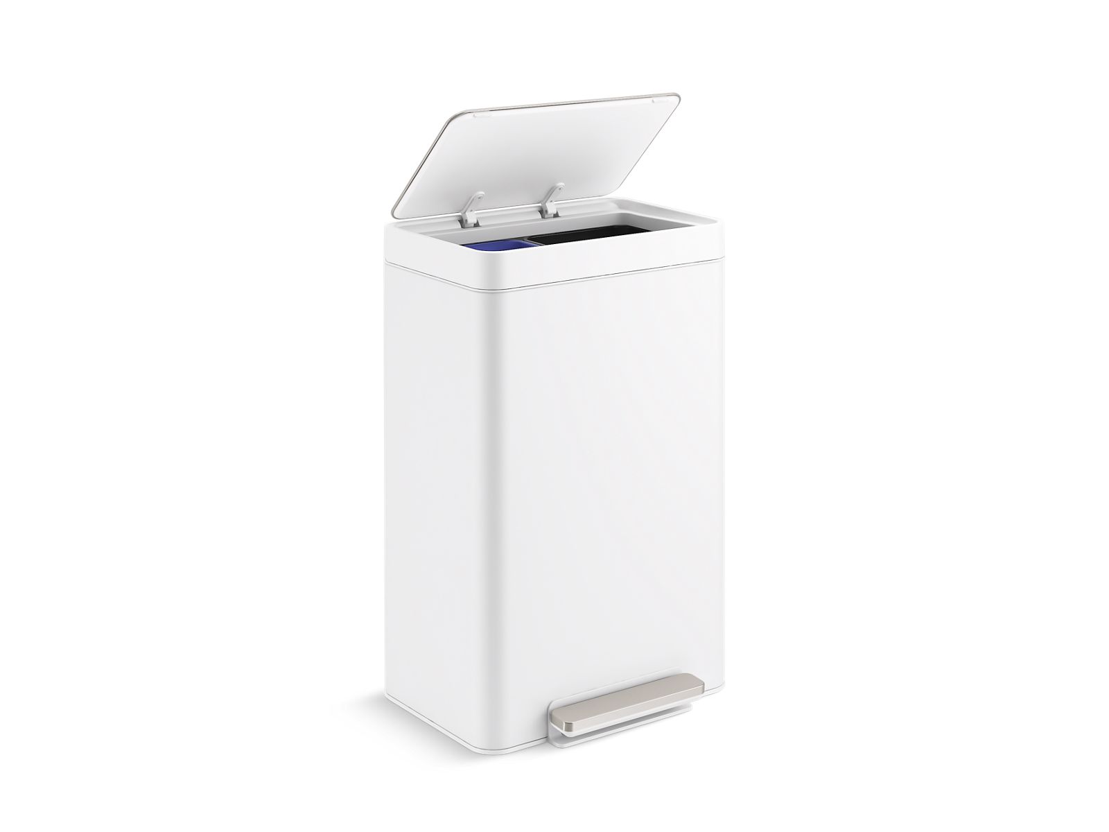 Crafted with thoughtful details and smart functionality, the KOHLER® step trash can collection will simplify your daily routine at home and meet the style demands of its surroundings. Equipped with dual 5.5-gallon bins, this rectangular step trash can keeps trash and recyclables neatly separated within one sleek container. The stainless steel trash can has an efficient footprint with clean lines and flush features, allowing it to be placed against the wall or cabinet.