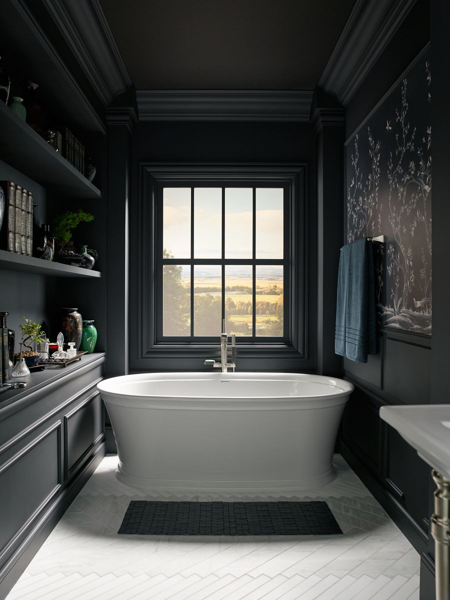 With rich detailing reminiscent of crown molding, this Memoirs freestanding bath brings classic architectural style to your bathroom. KOHLER Lithocast® cast resin material allows for geometries with dynamic style and crisp, hand-finished detail rich with character. KOHLER Lithocast Gloss cast resin is lightweight and easy to clean, with a high-gloss finish.