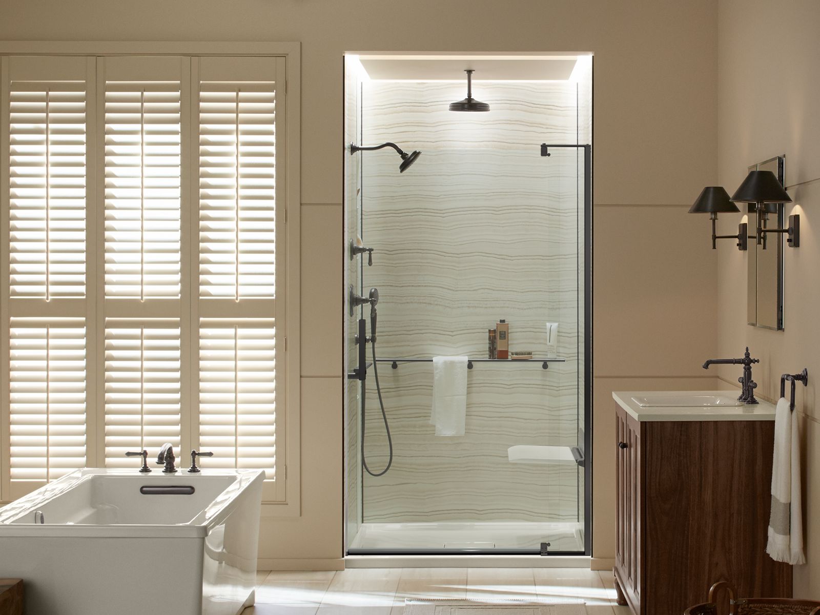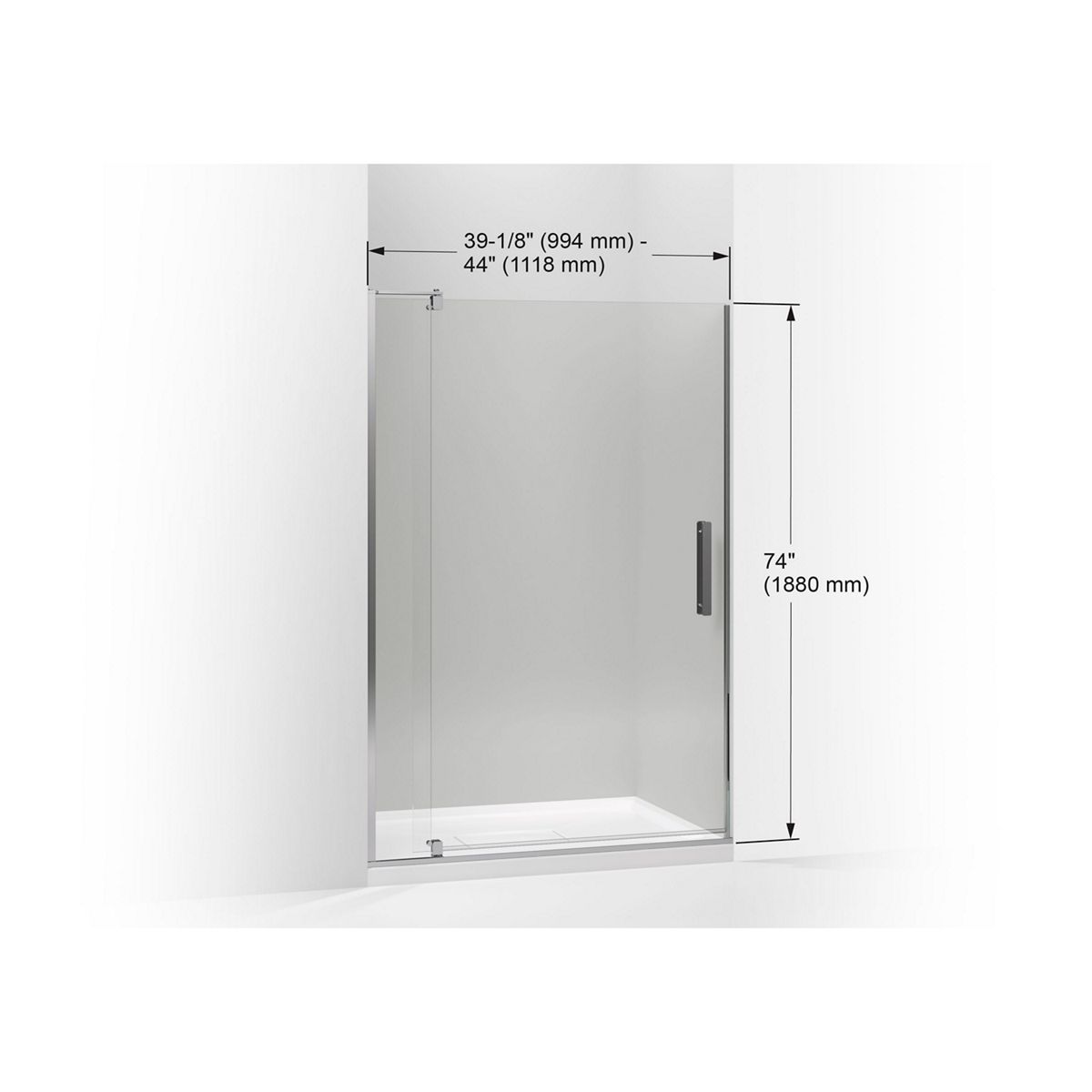 The Revel shower door creates an open, airy look with its minimalist frameless design and ultra-low threshold. Designed for easy personalization, the Revel series is available in a full range of KOHLER finishes and height and glass options, so you can choose the ideal door for your space. This adjustable-width door allows for simpler installation. The 5/16-inch-thick glass offers a luxurious, heavier feel. The tall 74-inch height enhances the look of the shower environment and better showcases the space for taller shower applications.