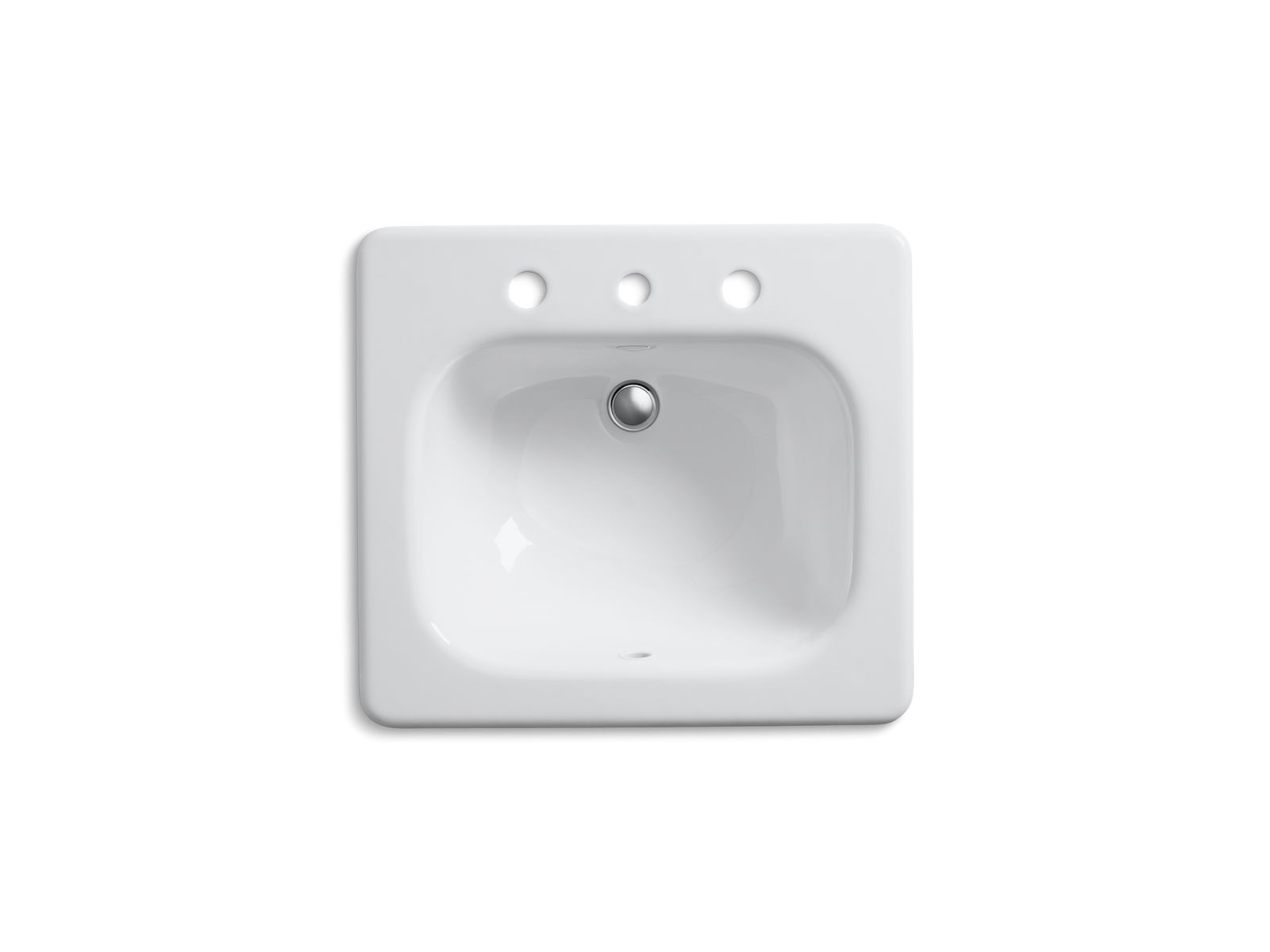 The Tahoe sink features a unique squared design, generous size, and durable construction. Crafted from KOHLER enameled cast iron, this sink resists scratching, burning, and staining for years of beauty and reliable performance. This drop-in sink has holes for faucets with 8-inch centers.