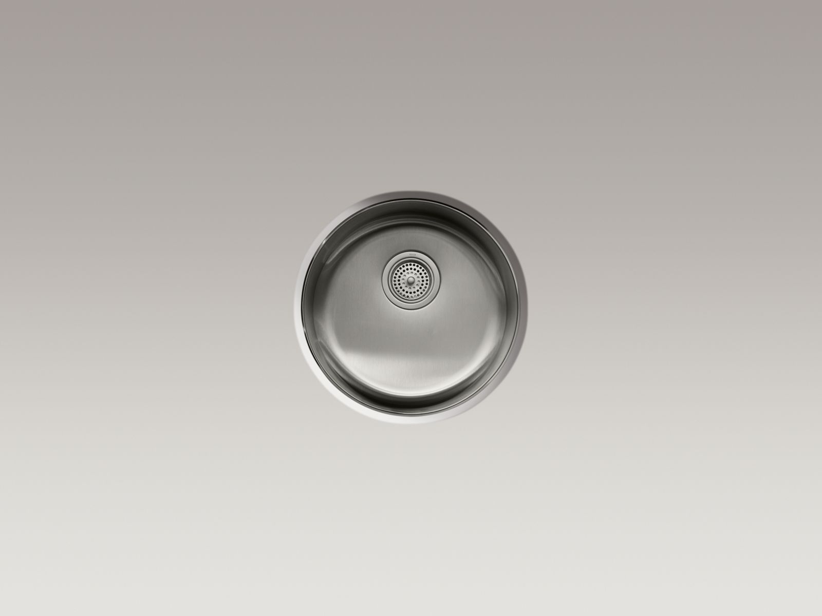 Bring understated style and professional polish to your kitchen with this contemporary Undertone sink. Constructed from durable stainless steel, this sink features a sleek circular basin with a flat bottom, which allows wineglasses to stand upright. A mirror-finish edge adds an elegant accent. An engineered sound-absorption system significantly reduces disposal and dishwashing noise.