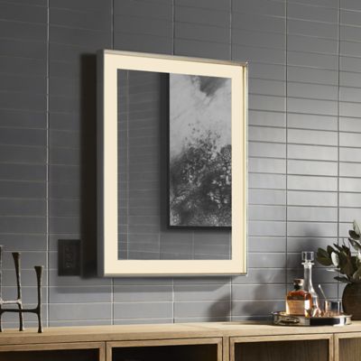 The Sculpt Lighted Mirror Collection includes two frame styles: Chamfer and Slim. The angled design of the Chamfer Museum frame adds dimension for a unique look that pairs well with transitional and traditional environments. For a shadow box effect and to complement a modern aesthetic, the sleek profile of the Slim Museum frame creates a minimalist look.