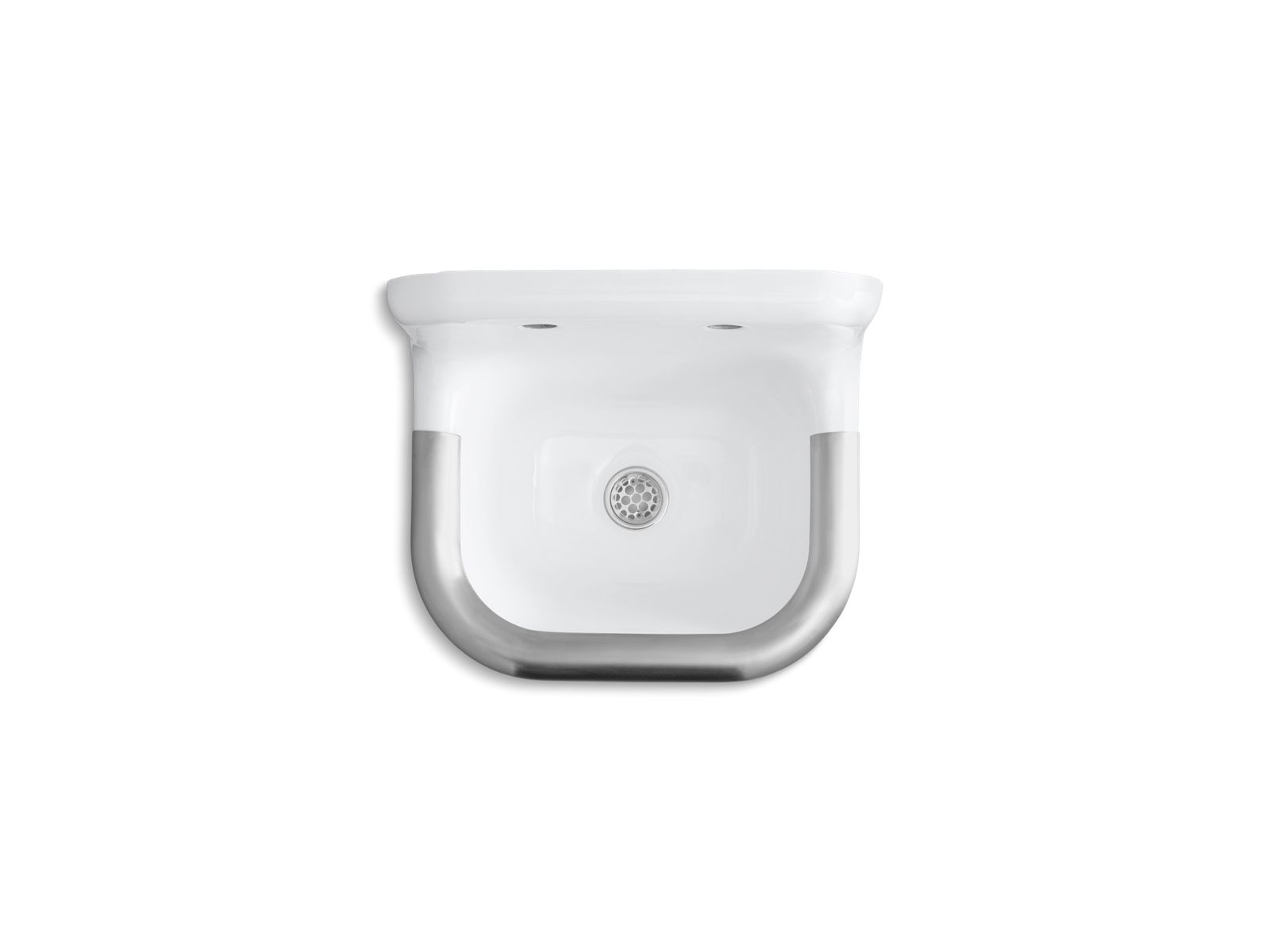 Bring functionality and classic KOHLER styling to your workspace with the Bannon wall-mount service sink. This deep, single-basin sink is constructed of KOHLER Cast Iron for years of reliable performance, and includes a rim guard for added durability. This model features two-hole drilling on the backsplash for faucets with 8" centers.