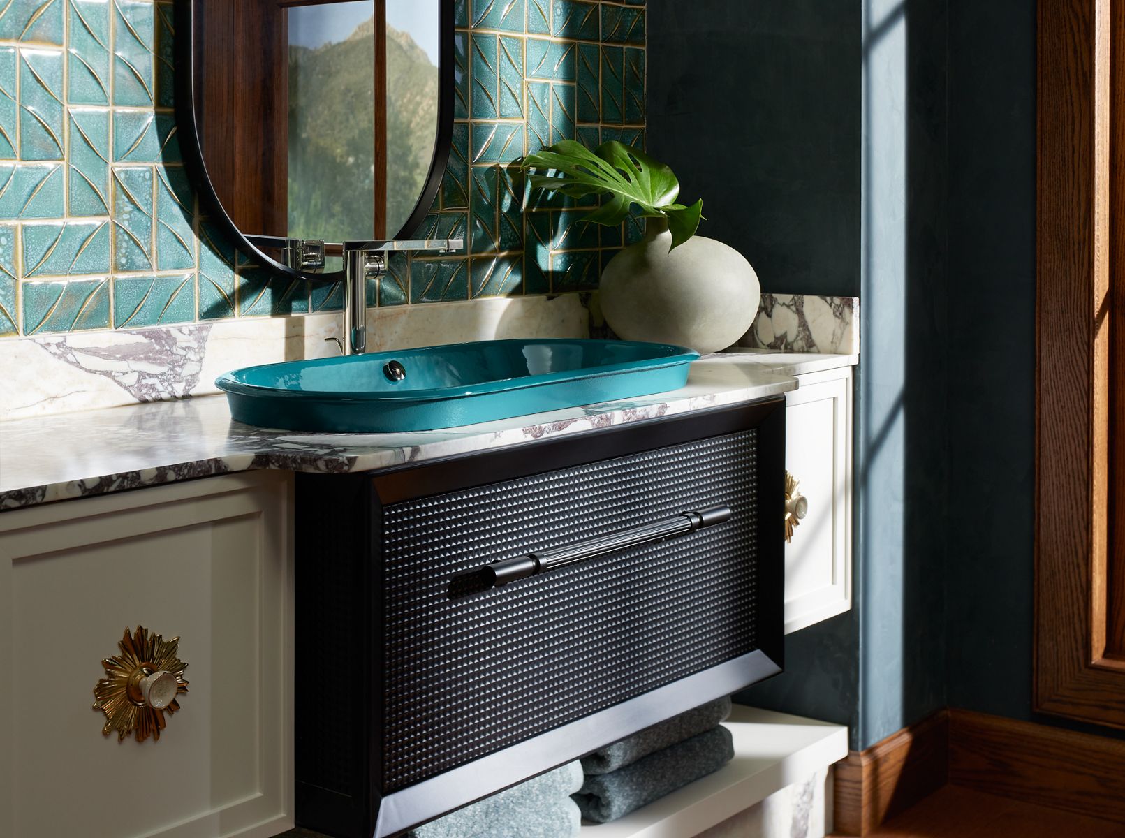 - Finishes coordinate with KOHLER® faucet and lighting products