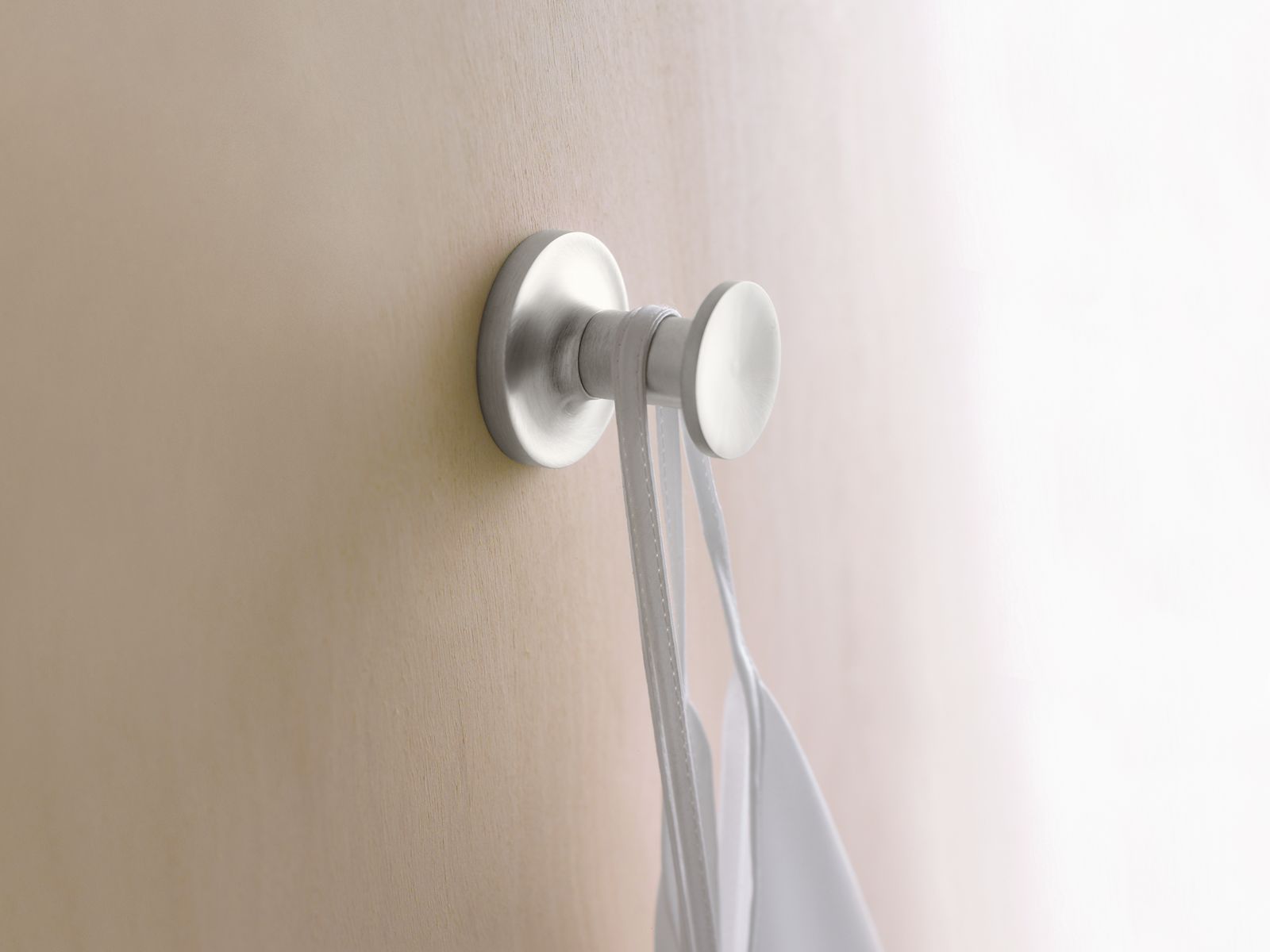 Purist accessories combine architectural forms with sensual design lines for a modern, minimalist look. With a round profile, this robe hook offers a simple silhouette and convenient place to hang your robe, towel, or clothing in the bathroom.
