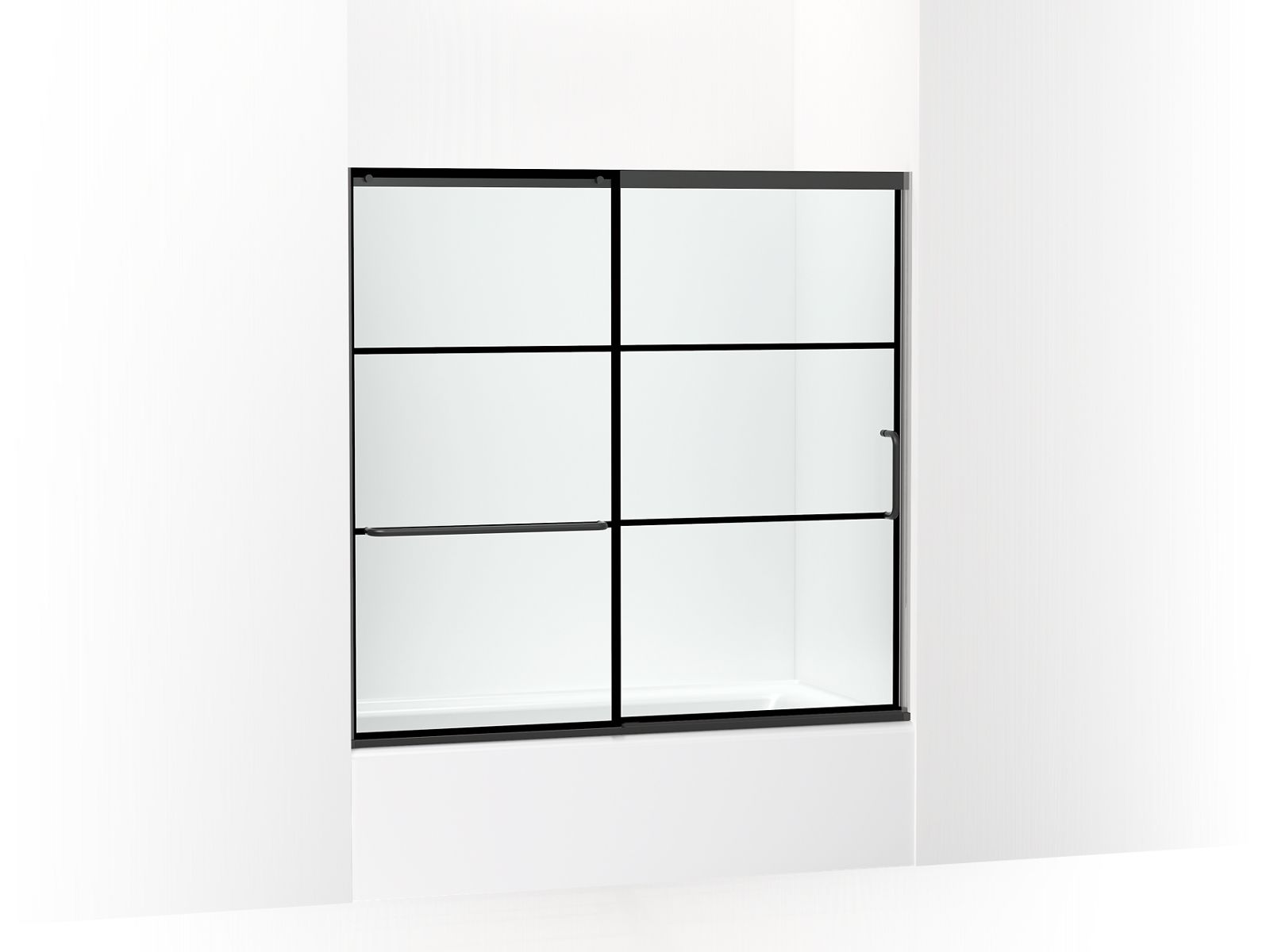 Elate® Sliding Bath Door, 56-3/4" H X 56-1/4 - 59-5/8" W, With 1/4" Thick Crystal Clear Glass With Rectangular Grille Pattern Matte Black