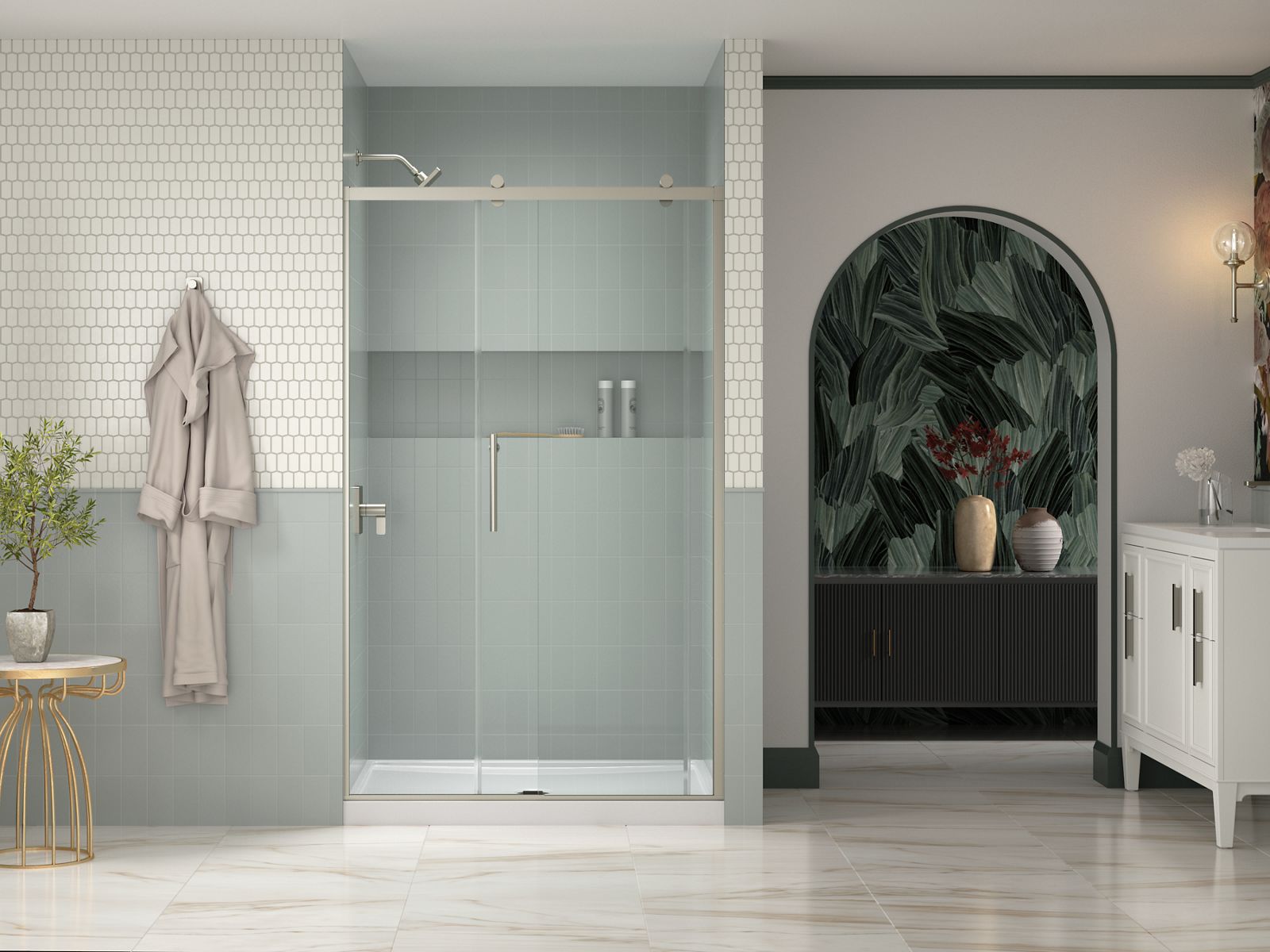 With a sleek, minimalist design, oversized rollers for best-in-class sliding action, and low-maintenance CleanCoat®+ glass treatment, the KOHLER® Rely shower door combines bold style with delightful functionality. Because Rely can be installed to open from the left or right, it fits easily into your bathroom layout, and 3/8" out-of-plumb adjustability on each side makes the Rely shower door easy to install. A range of sizes, glass types, and finishes means there’s a Rely shower door waiting for you.