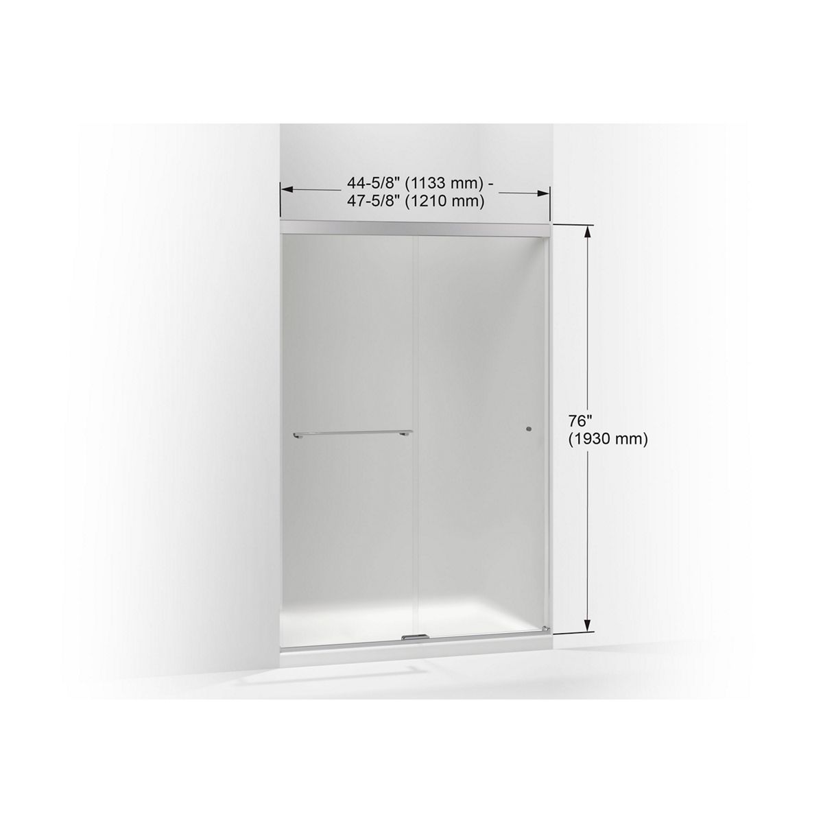 Revel® Sliding Shower Door, 76" H X 44-5/8 - 47-5/8" W, With 5/16" Thick Frosted Glass Anodized Dark Bronze