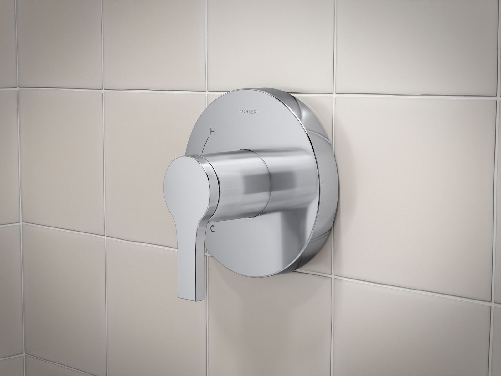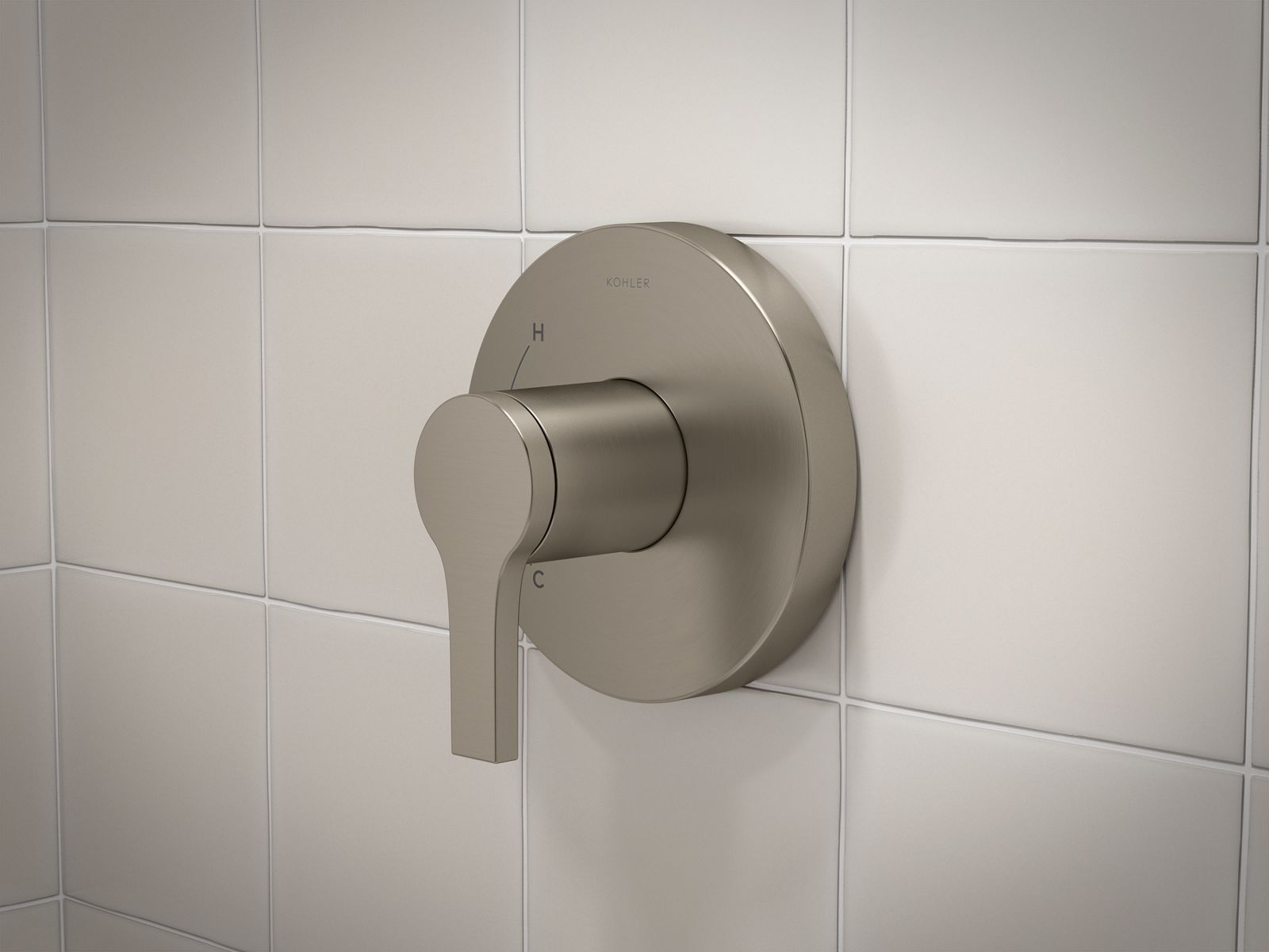 Inspired by pure geometric style, the form of the Elate bathroom faucet collection has a sophisticated fluidity that brings a visually stunning yet simple look to the bathroom. This Elate shower trim kit includes a shower arm with flange and a lever handle. Pair this trim with a Rite-Temp valve to complete the installation. At Kohler, we make it our business to help you create the bathroom space of your dreams.