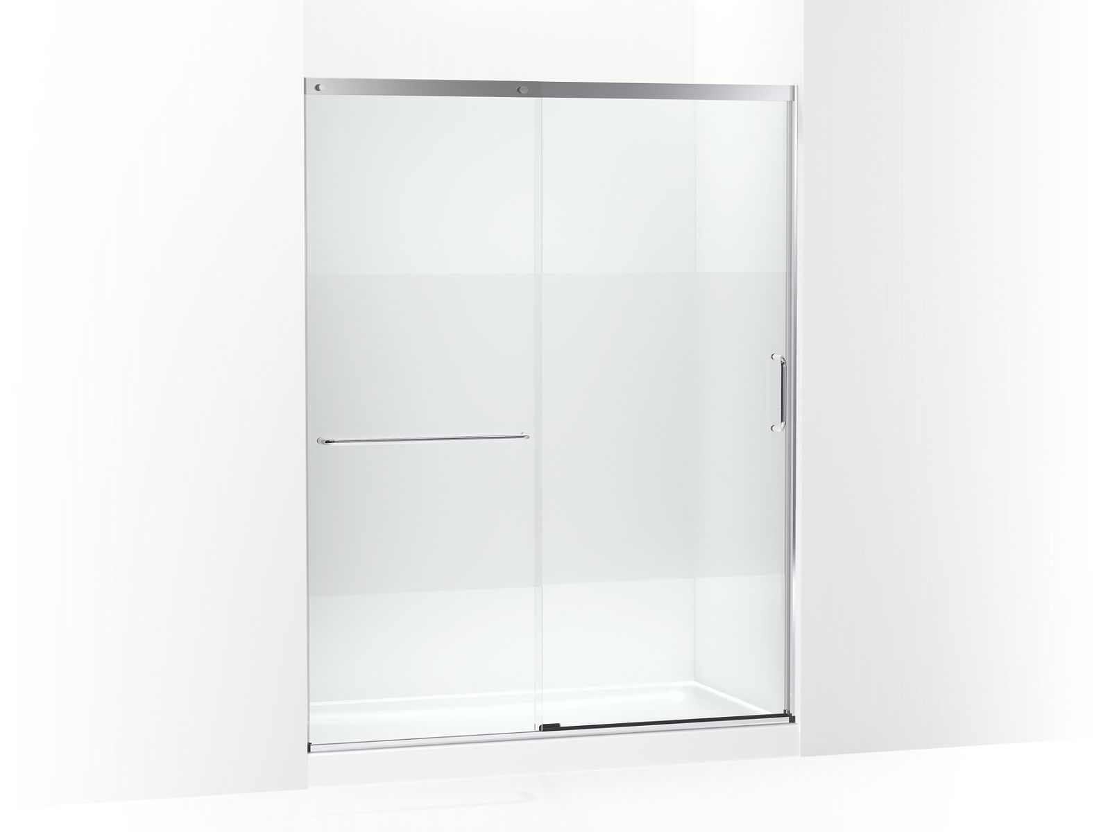 - Frameless, heavy 5/16" (8 mm) thick Crystal Clear tempered glass with frosted privacy band