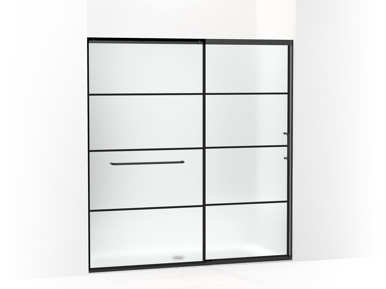 Elate® Sliding Shower Door, 75-1/2" H X 68-1/4 - 71-5/8" W, With Heavy 5/16" Thick Frosted Glass With Rectangular Grille Pattern Matte Black