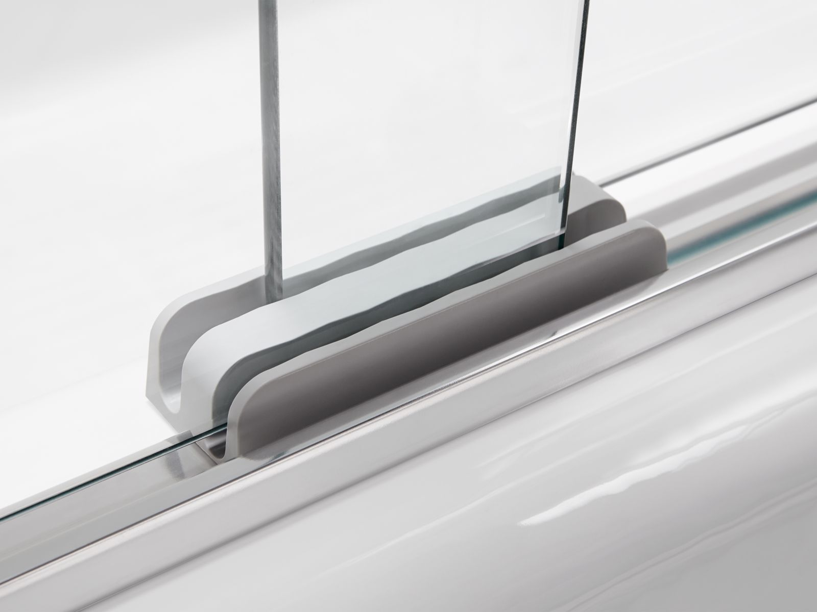The Revel shower door creates an open, airy look with its frameless design, minimal top track, and clear wall jambs. Designed for easy personalization, the Revel series is available in a full range of KOHLER finishes and height and glass options, so you can choose the ideal door for your needs. The 5/16-inch-thick glass offers a luxurious, heavier feel. Revel frameless bath and shower doors combine superior performance with sleek, minimalist design for the perfect complement to your bathing and showering space.