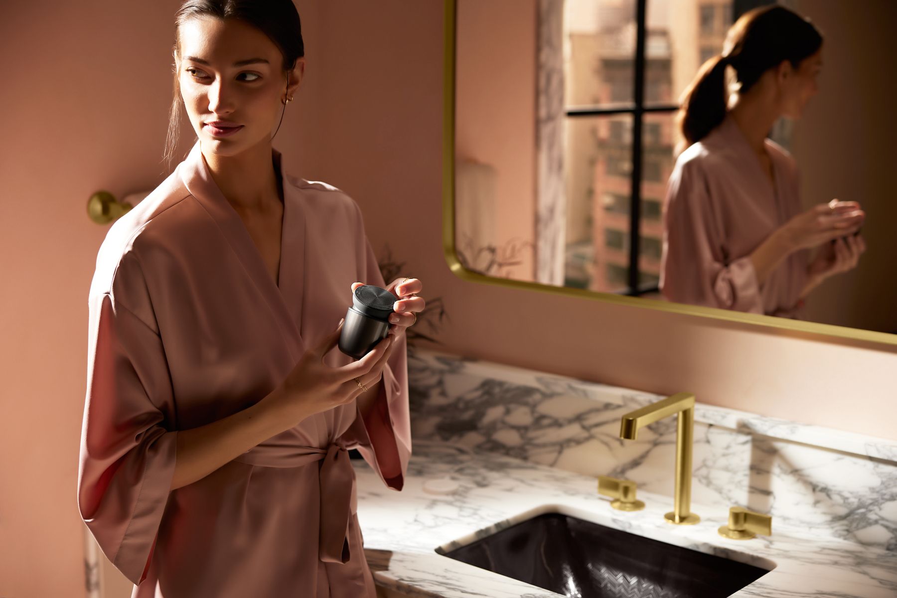 The SpaViva handshower and all-in-one cleansing device is the ideal power pair to revolutionize your in-shower self-care routine. The handshower features the pore-penetrating power of MicroBubble spray while also offering full-coverage Katalyst spray that retains more heat with each drop. The all-in-one cleansing device magnetically docks into the center of the handshower and features a range of versatile attachments, including a facial brush, body brush, body scrubber, and body massager. At full charge it runs for 90 minutes and rotates at a selection of three speeds. Extend the handle with the push of a button to effectively cleanse hard-to-reach areas and rejuvenate your skin from head to toe.