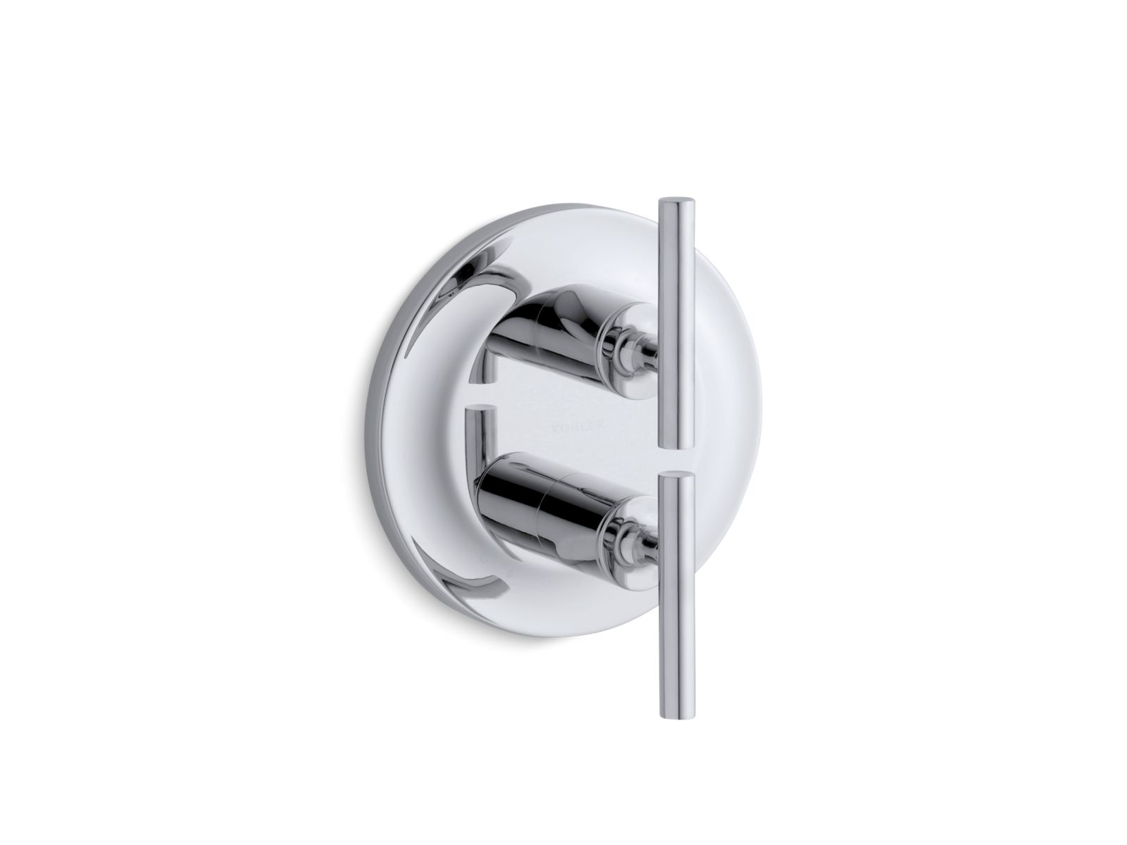 Purist faucets and accessories combine simple, architectural forms with sensual design lines and careful detailing. This valve trim echoes Purist's modern, minimalist style with a simple pair of stacked, ergonomic lever handles for easy control. Pair this trim with a MasterShower® stacked thermostatic valve for precise water temperature.