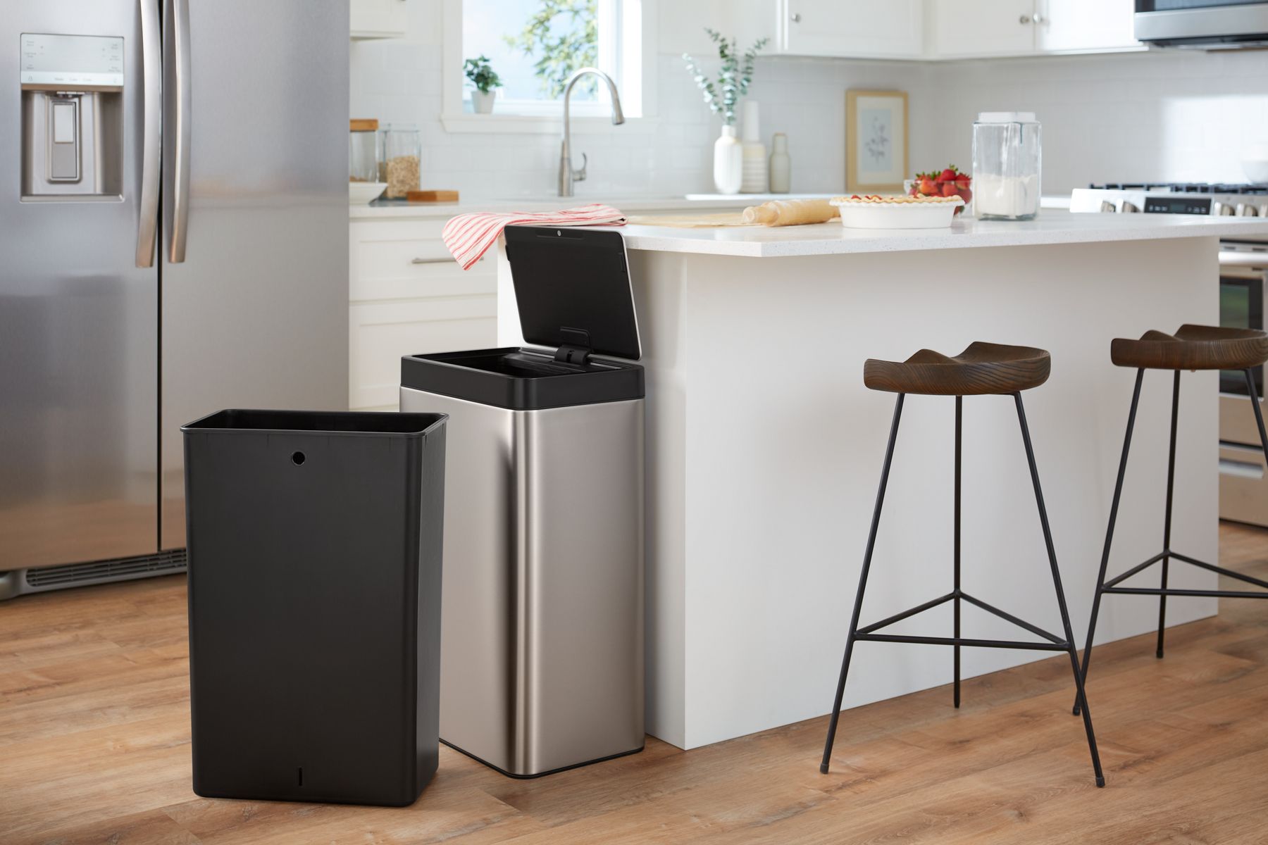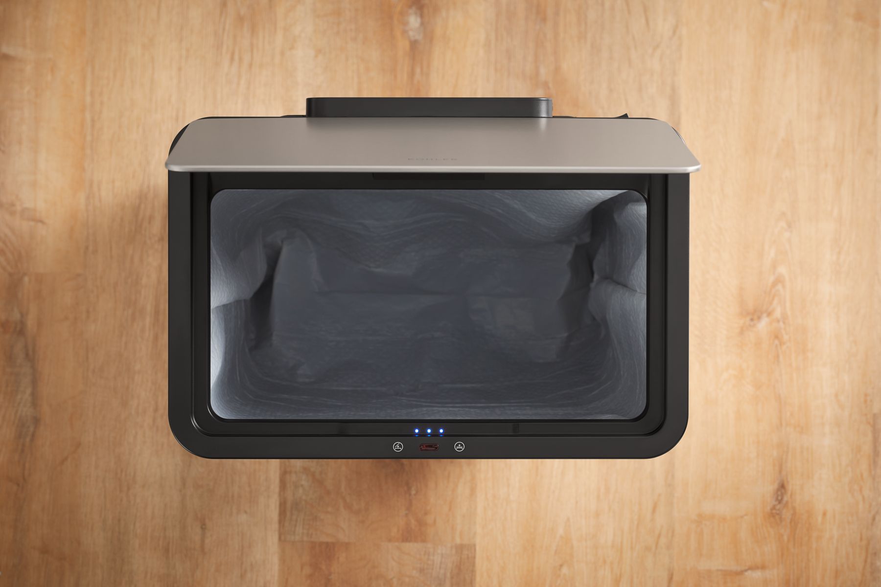 Crafted with thoughtful details and smart functionality, the KOHLER® 13-gallon motion-sensor trash can minimizes the spread of germs, simplifies your daily routine, and meets the style demands of its surroundings. It opens automatically with the wave of a hand, allowing for more sanitary everyday operation. Push-button functionality allows you to keep the lid open for continuous use, if desired. The rectangular can with removable liner bin fits any brand of 13-gallon trash bags. Its convenient design allows it to be placed right against a wall or cabinet, and the fingerprint-resistant finish keeps it clean longer.