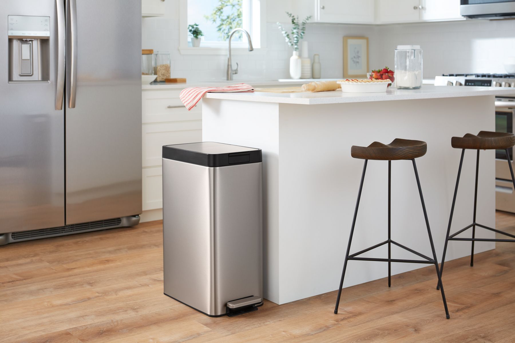 - Designed to fit any brand of 13-gallon (49-liter) trash bag