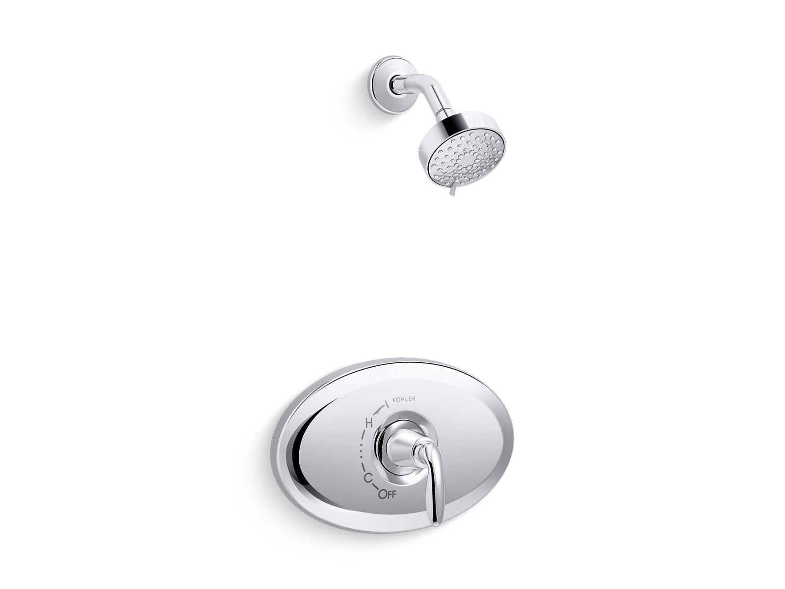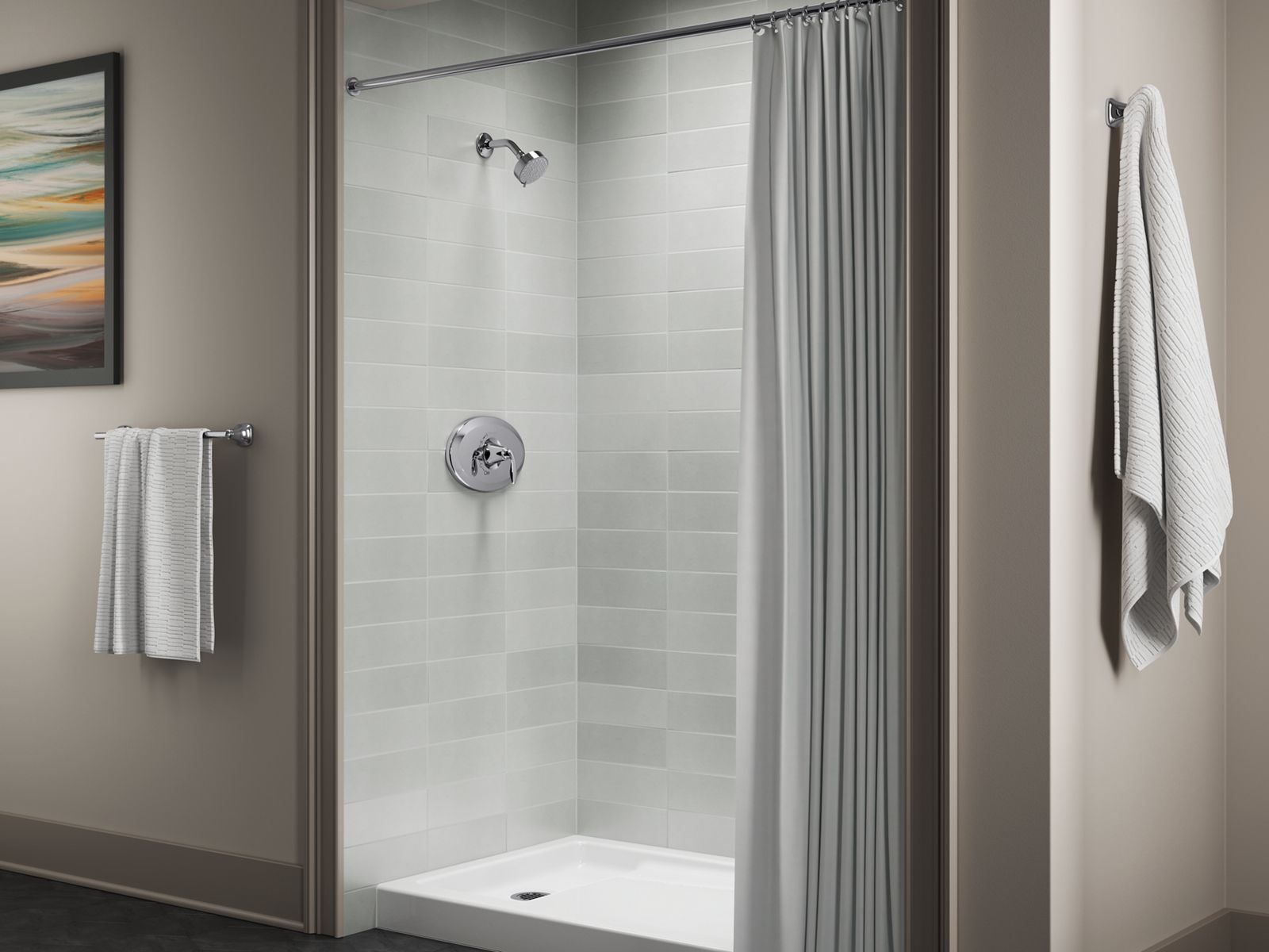 Easily cover the holes from your two-handle shower valving conversion with our Remodel Rite-Temp shower trim kit. The escutcheon plate easily covers holes from your outdated two-handle shower trim installation, and the single-lever handle easily rotates for on/off activation and temperature control. A three-function showerhead completes the set, and with clean, attractive lines, the plate, handle, and showerhead will fit in with any bathroom décor. At Kohler, we make it our business to help you create the bathroom space of your dreams.