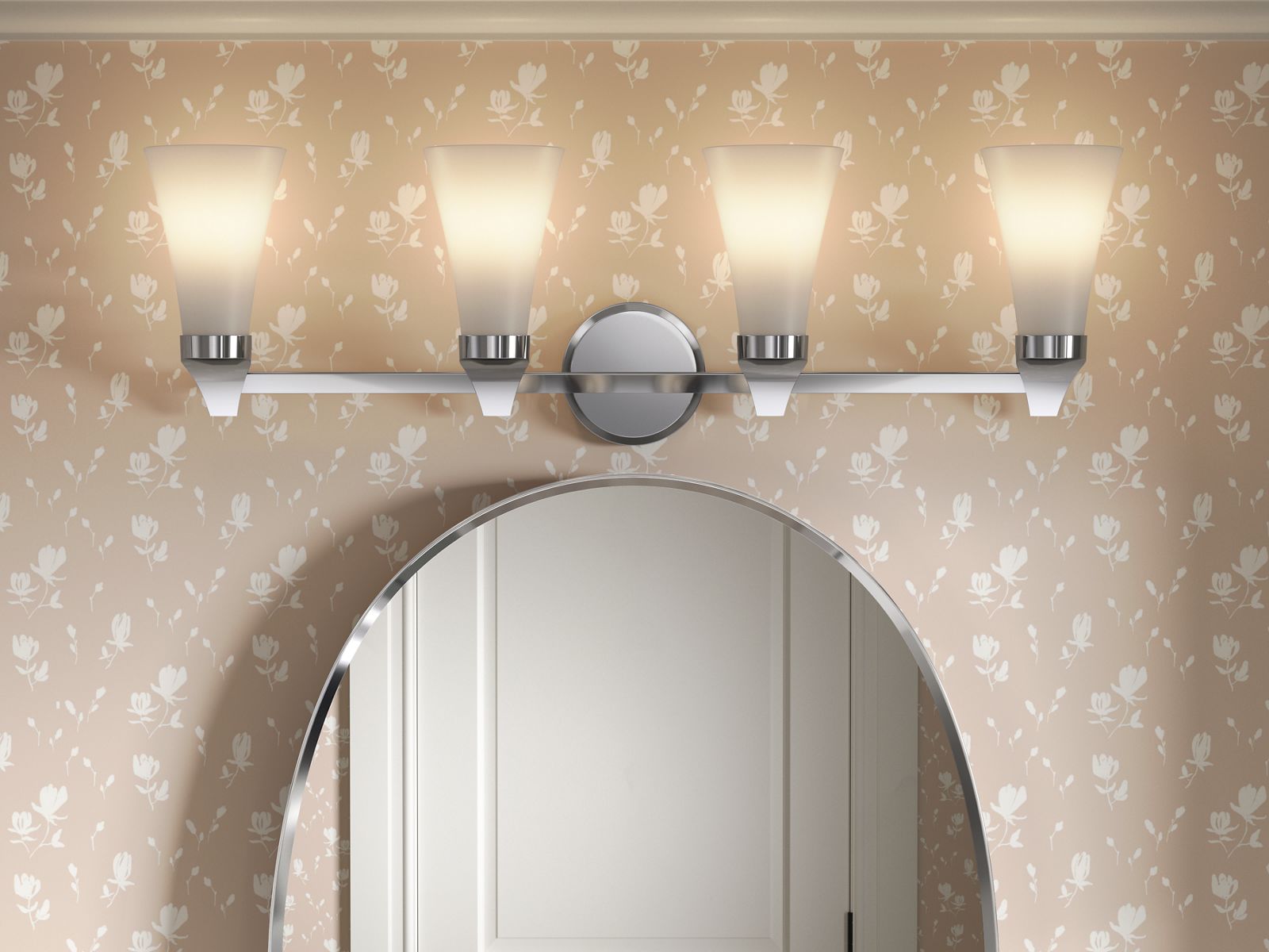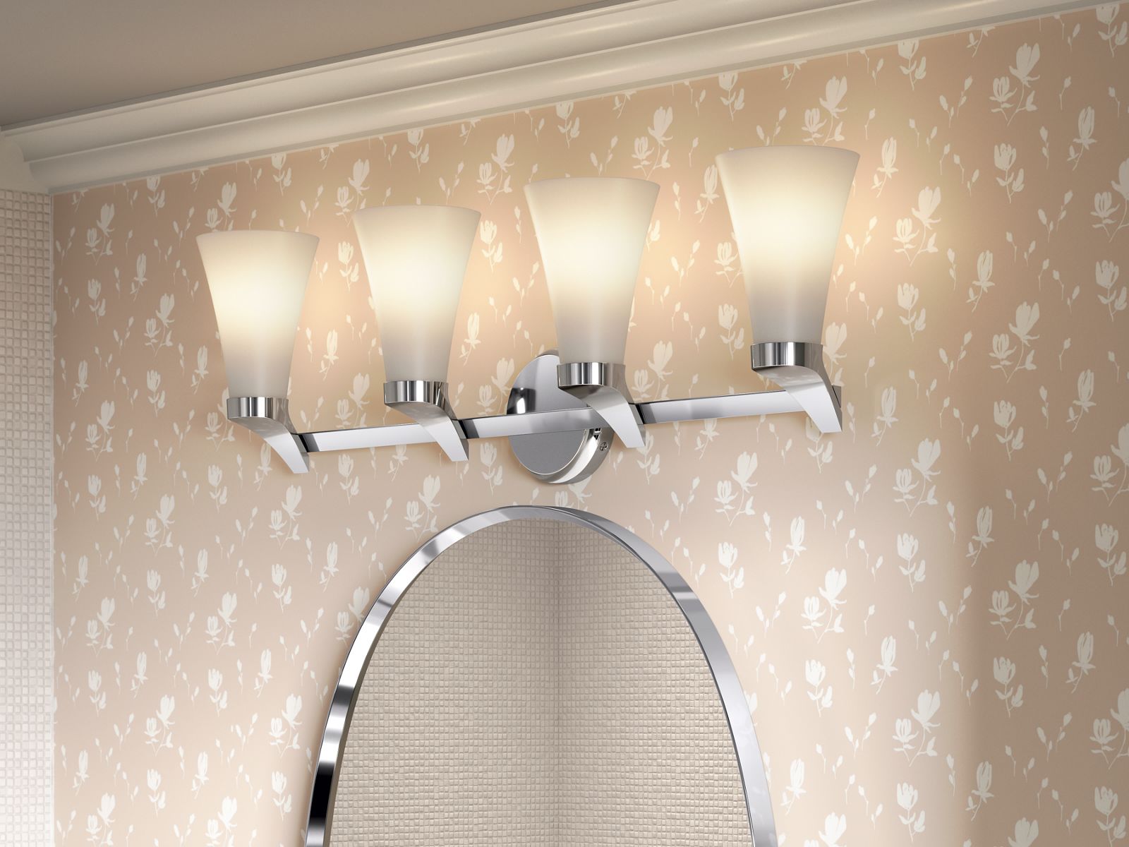 - Painted glass shades perfectly diffuse the light, reducing glare in the bathroom