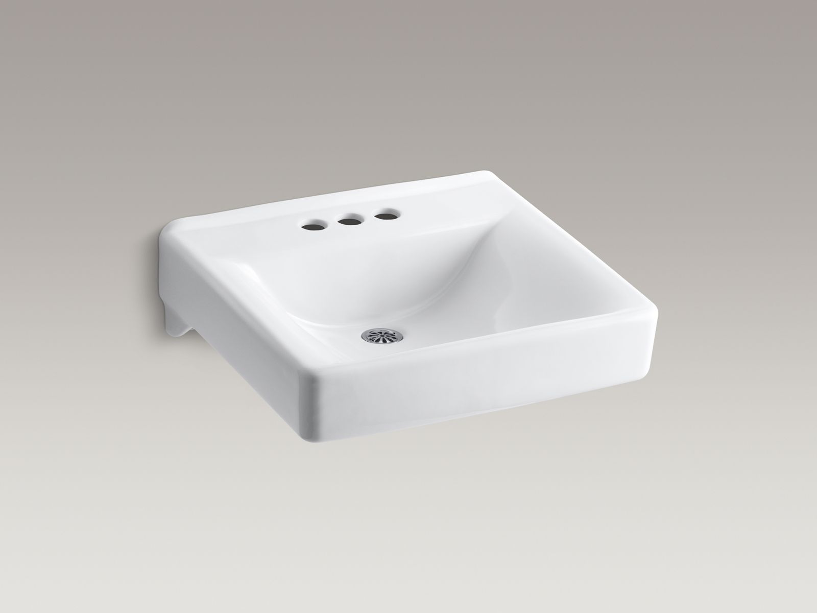 Crafted of premium materials that withstand high-volume usage, the Soho wall-mount lavatory brings style and long-lasting beauty to any bath or powder room. This model features drilling for faucets with 4" centers, drilling for a concealed arm carrier, and includes a sealed overflow for commercial and hospital applications.