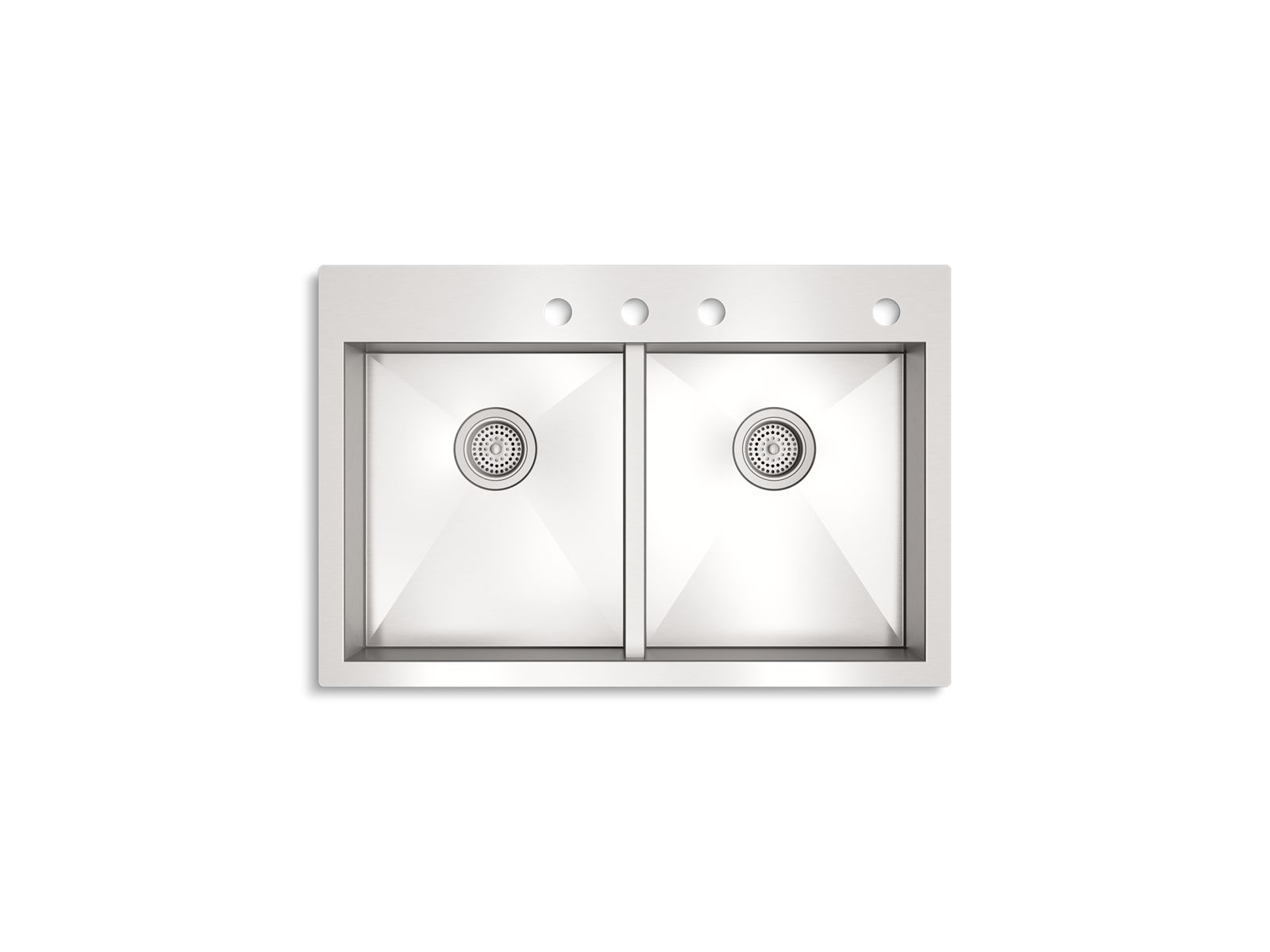 - Three faucet holes and one accessory hole to the right