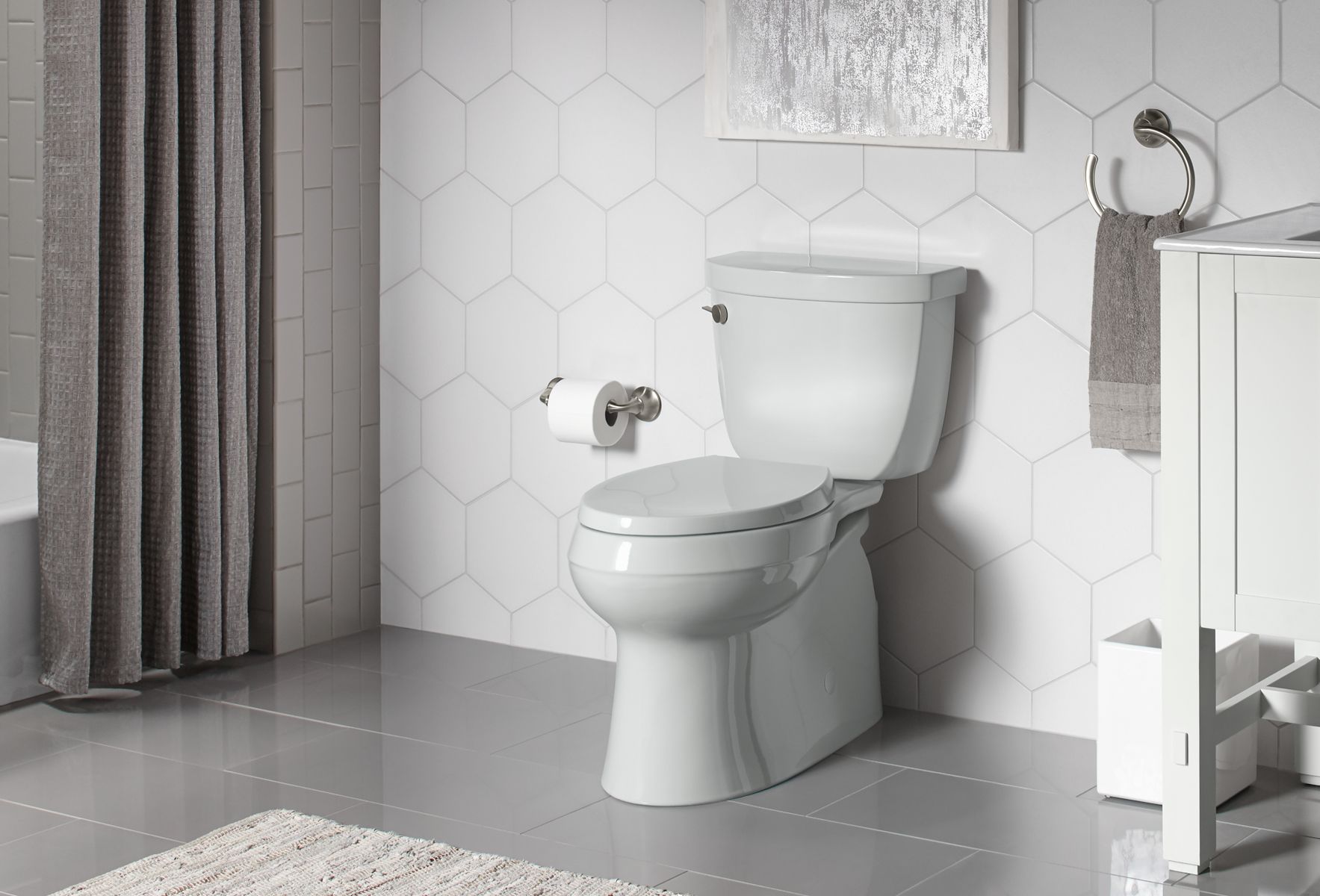 This WaterSense(R)-labeled high-efficiency toilet delivers water conservation and easy installation in a sleek, skirted design. The Cimarron two-piece skirted toilet utilizes Kohler's patented new ReadyLock(TM) installation system for easier, more intuitive installation. The skirted trapway installs to the floor flange and attaches to the toilet, eliminating the need to drill holes for a standard 12" rough in while offering the same secure installation as non-skirted toilets.