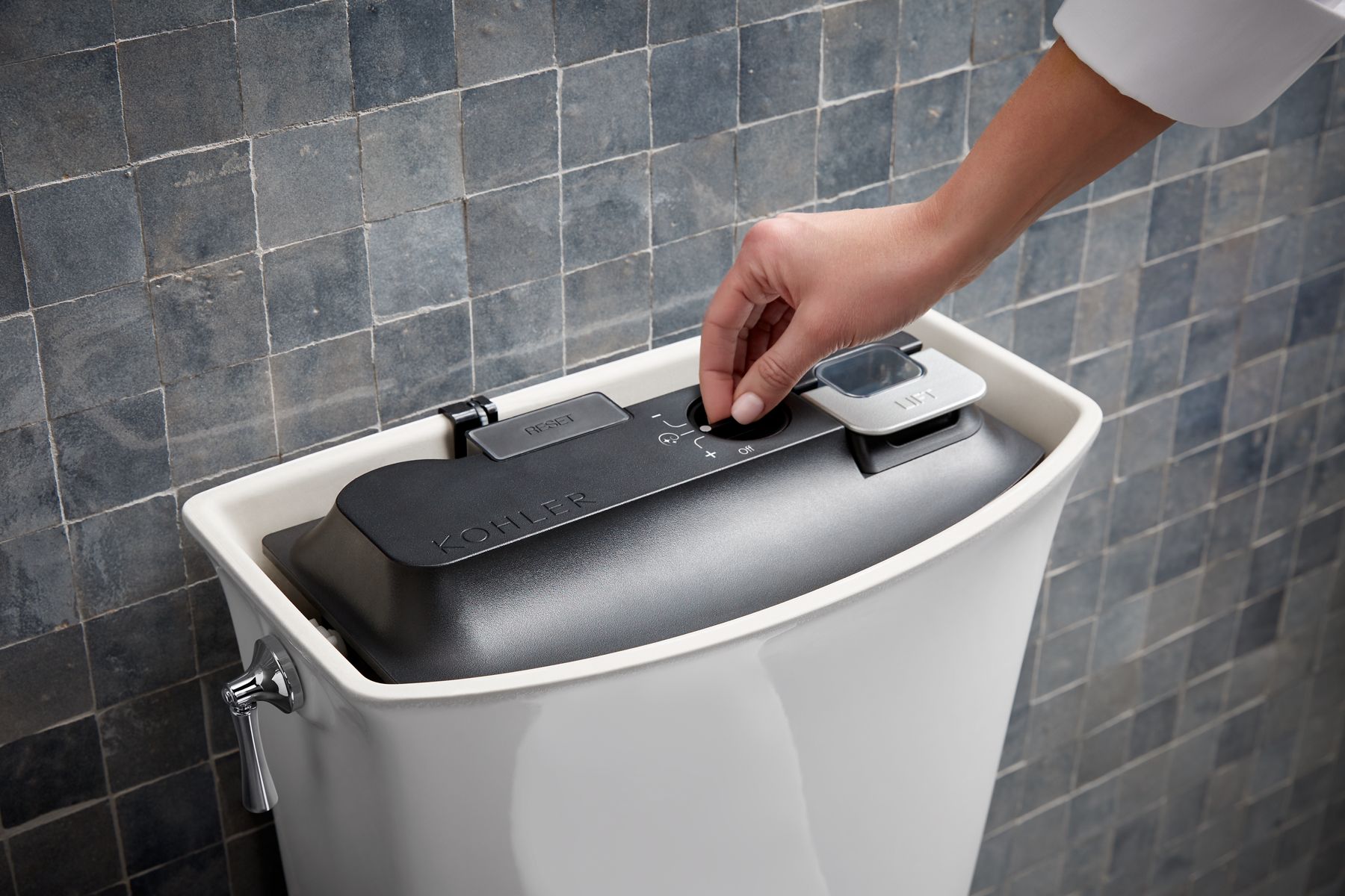 This Corbelle ContinuousClean XT toilet tank features an automatic dispensing system that delivers a consistent amount of toilet bowl cleaner with every flush to keep your bowl cleaner between flushes. Simply place a cleaning tablet in the tank compartment, set the desired amount with the adjustment dial, and the system does all the work. This water-efficient toilet tank also utilizes the innovative AquaPiston technology, a patented flush engine that delivers a fast, powerful, and virtually plug-free flush. Pair this tank with the K-4144 bowl for a complete Corbelle with ContinuousClean skirted toilet.