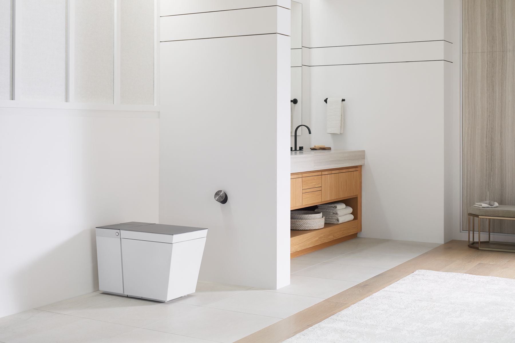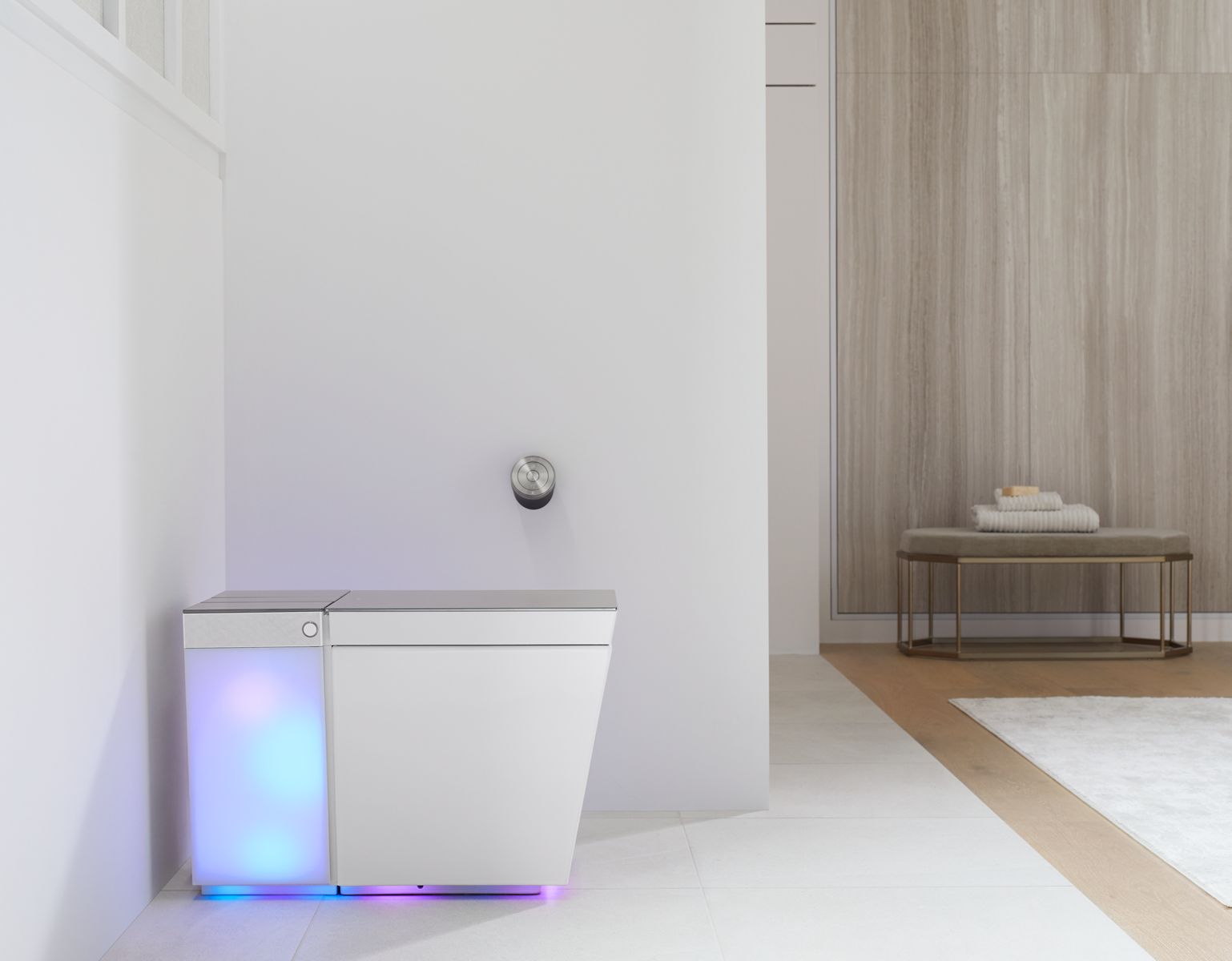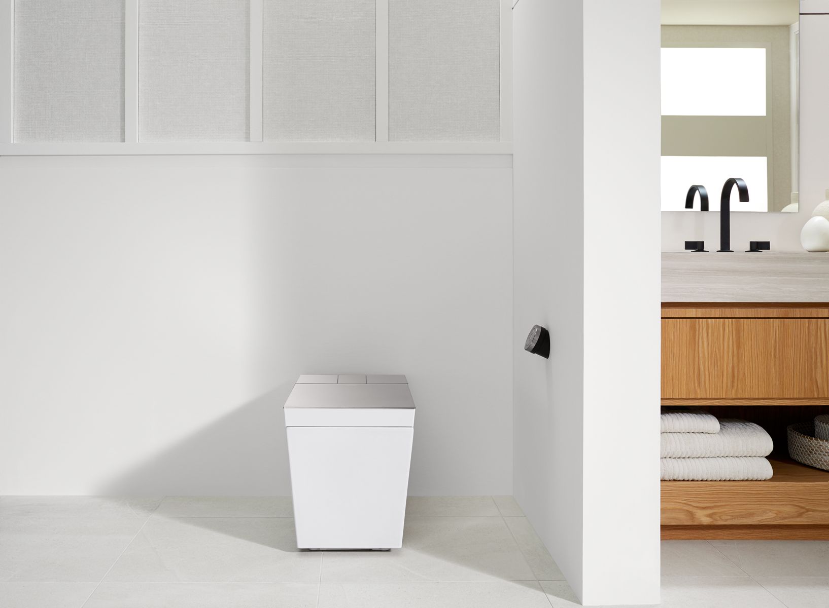 The Numi 2.0 smart toilet combines unmatched design and technology to bring you the finest in personal comfort and cleansing. Kohler's most advanced toilet now offers personalized settings that let you fine-tune every option to your exact preferences, from ambient colored lighting and built-in audio speaker system to the heated seat with hands-free opening and closing. Other upgrades include power-save mode for energy efficiency, emergency flush for power outages, and an intuitive remote that complements the KOHLER Konnect® app for advanced control. From its striking form to its exceptional water efficiency, the Numi 2.0 smart toilet marks a new standard of excellence in the bathroom.