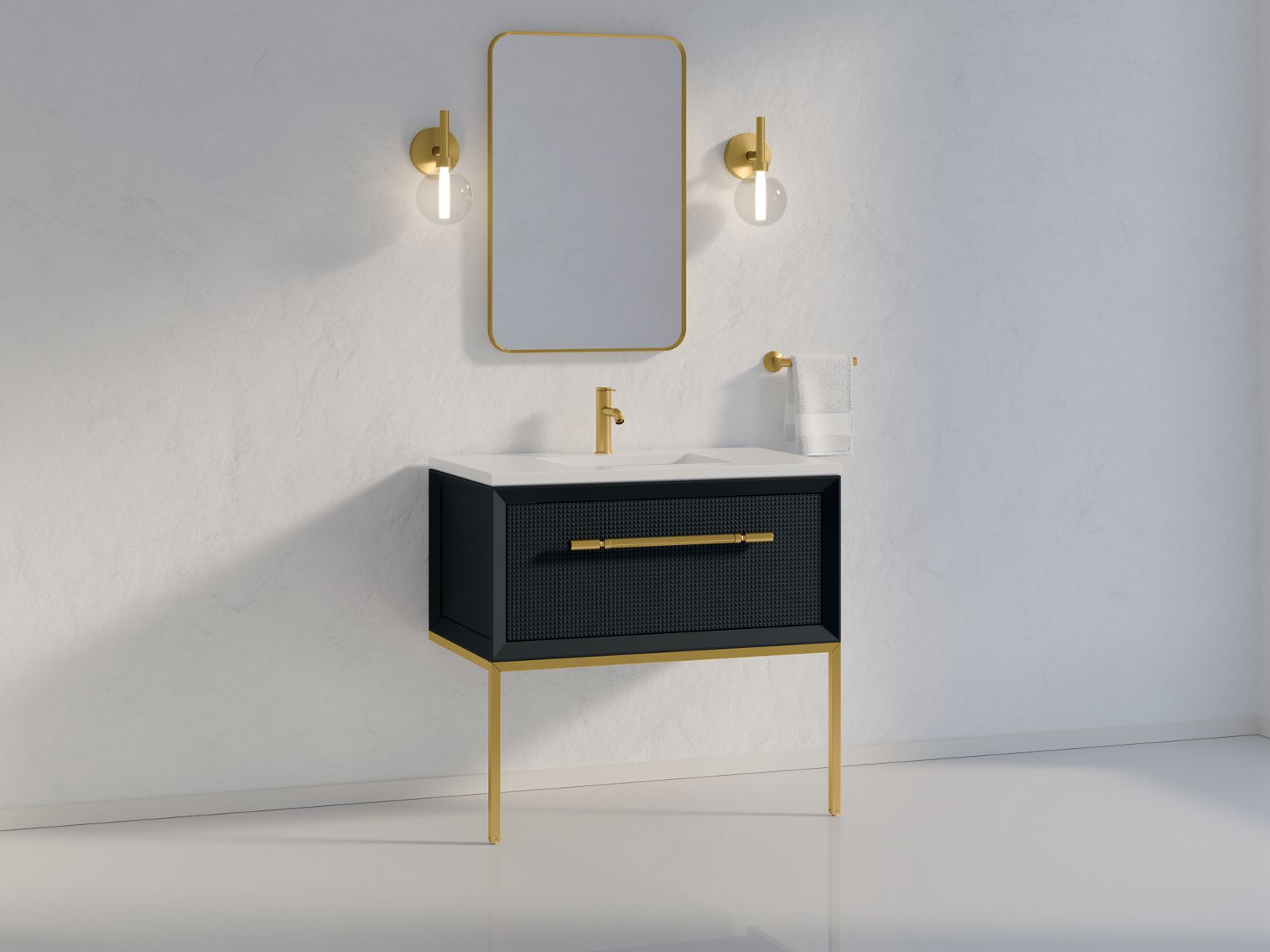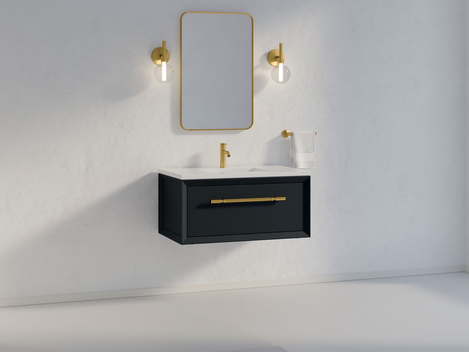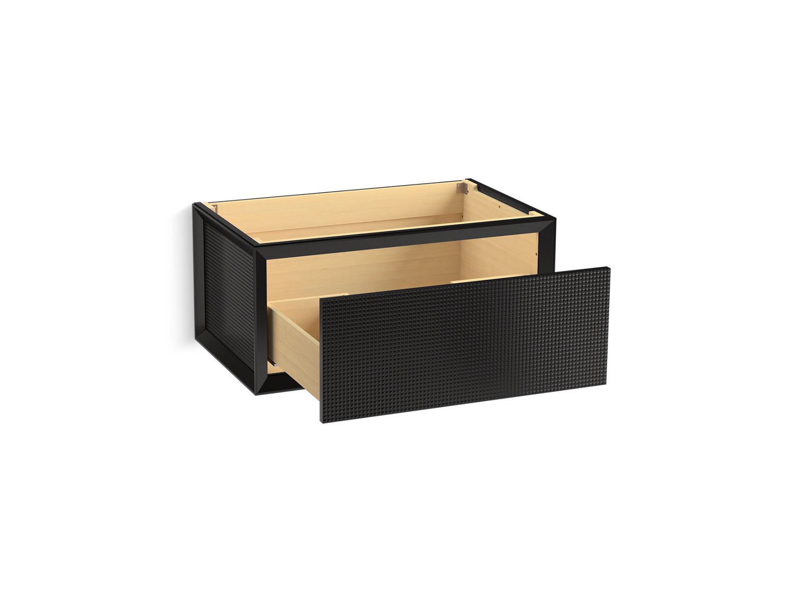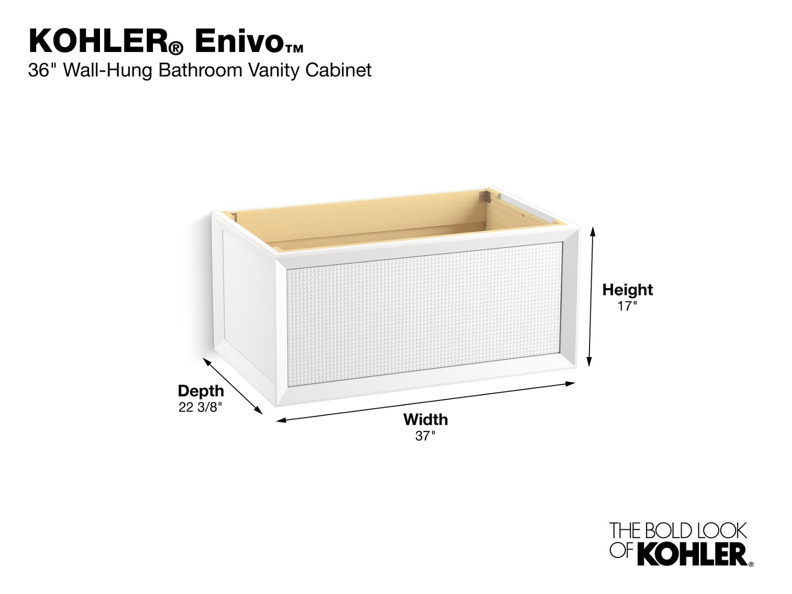A stylishly elegant ensemble with playful detailing, Enivo promises to be the star of your bathroom. Textured drawers and panels juxtapose against glossy molding in the chest-like cabinet base. No matter your decor, this modern wall-hung vanity comes dressed to impress, a sophisticated canvas for housing accessories and accentuating your personal style—particularly when paired with coordinating quartz tops, KOHLER sinks, and legs (sold separately).