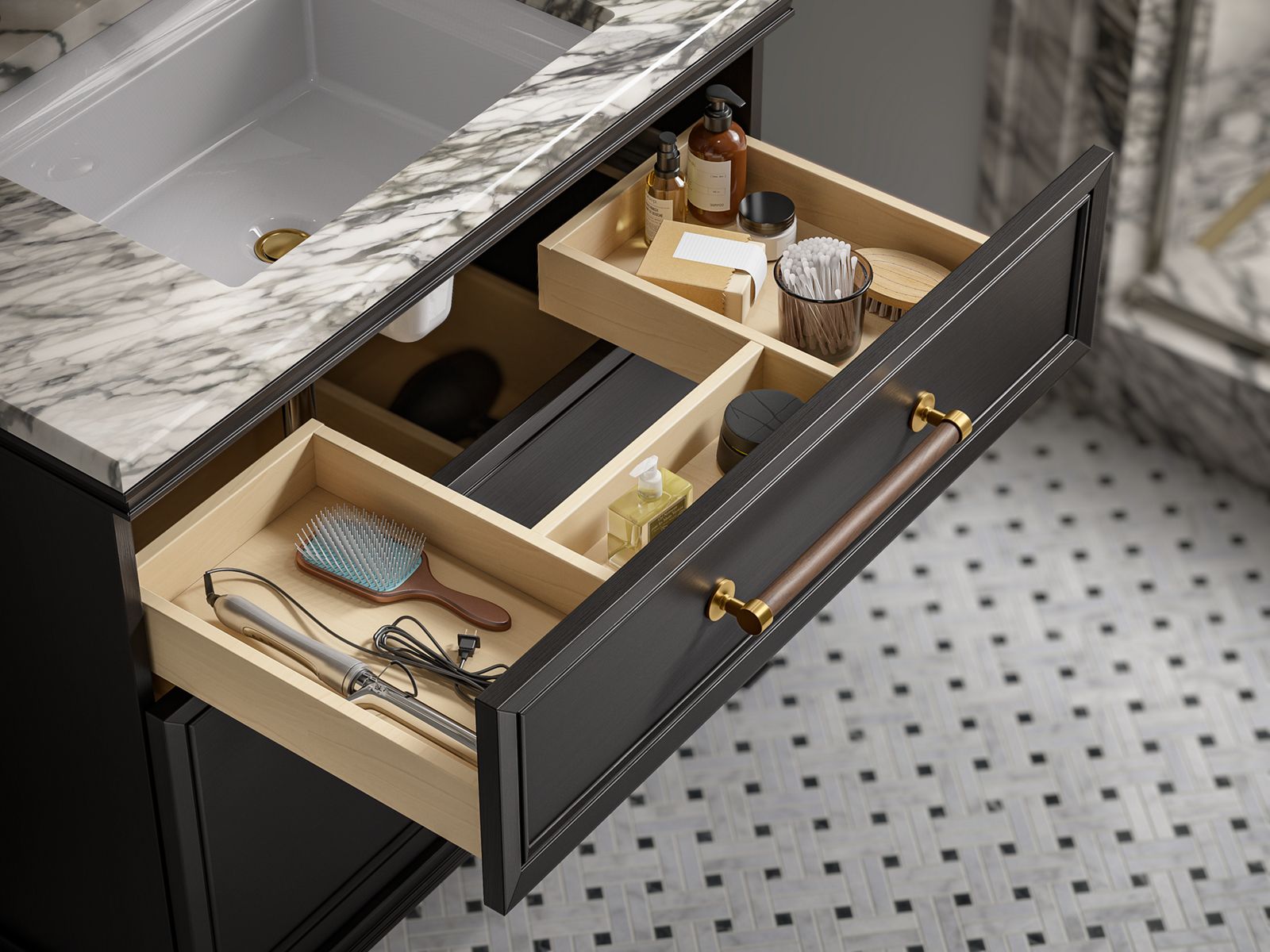 - Soft-close undermount drawer slides for smooth opening