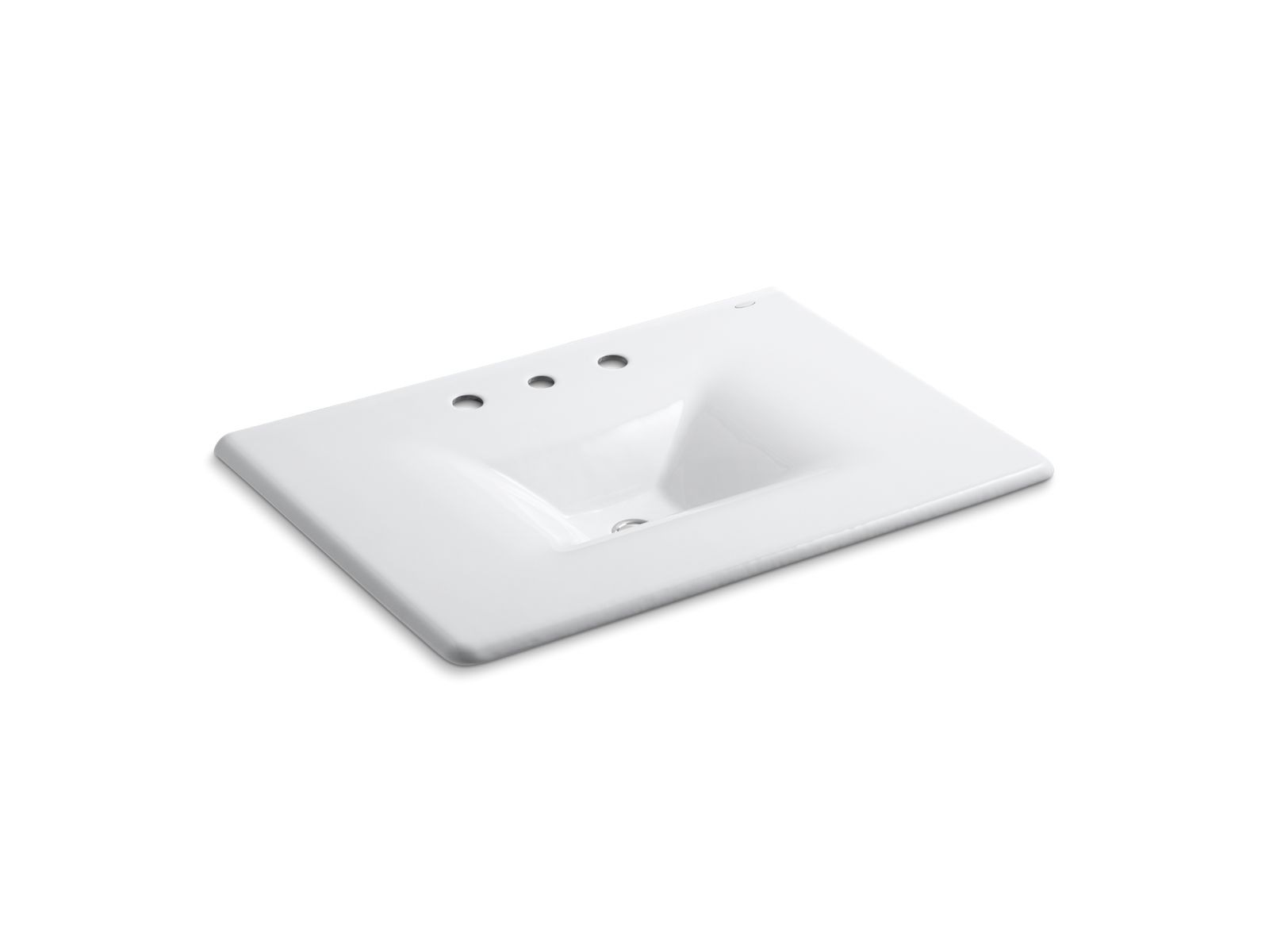 With its graceful sloping sides, the Iron/Impressions sink adds elegance to the bathroom. The rectangular countertop curves seamlessly into a sleek basin, creating a sophisticated design element that coordinates with 30-inch vanities. Enameled cast iron construction makes it durable and easy to clean.