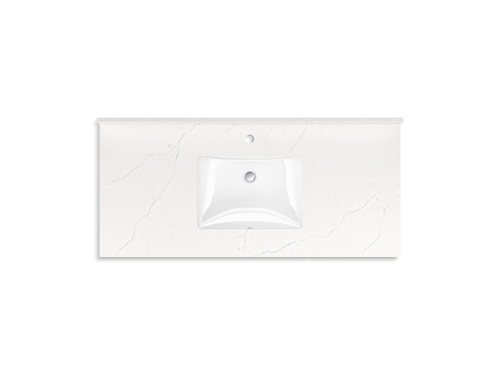 - Vanity top has single faucet hole with knock-out holes for optional 8" (203 mm) widespread faucet configuration